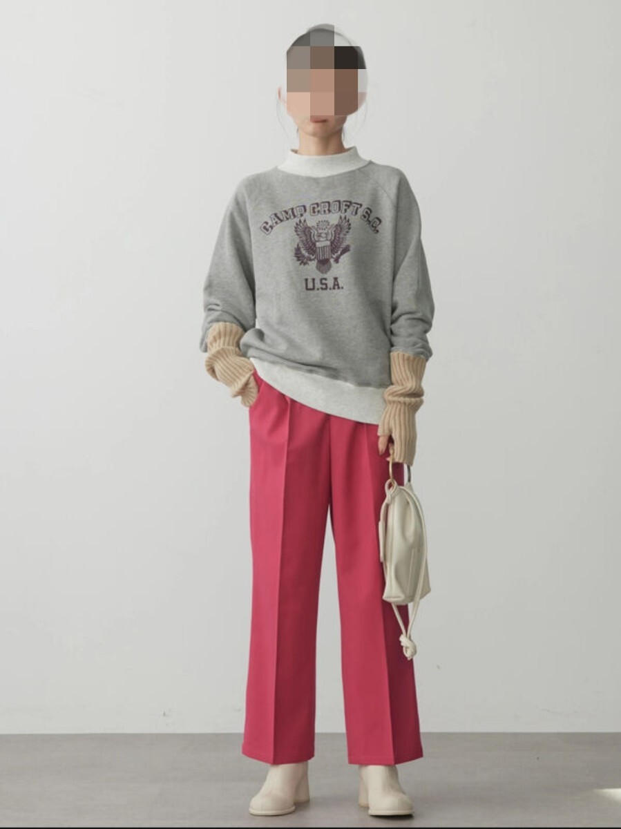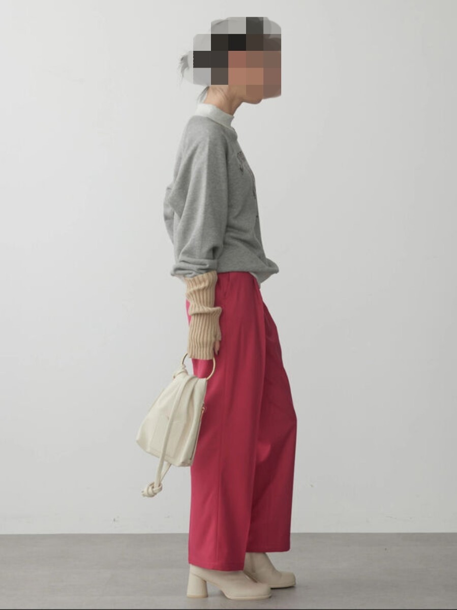 暗くなりがちな秋冬のスタイリングに明るさをプラスしてくれるピンクです。