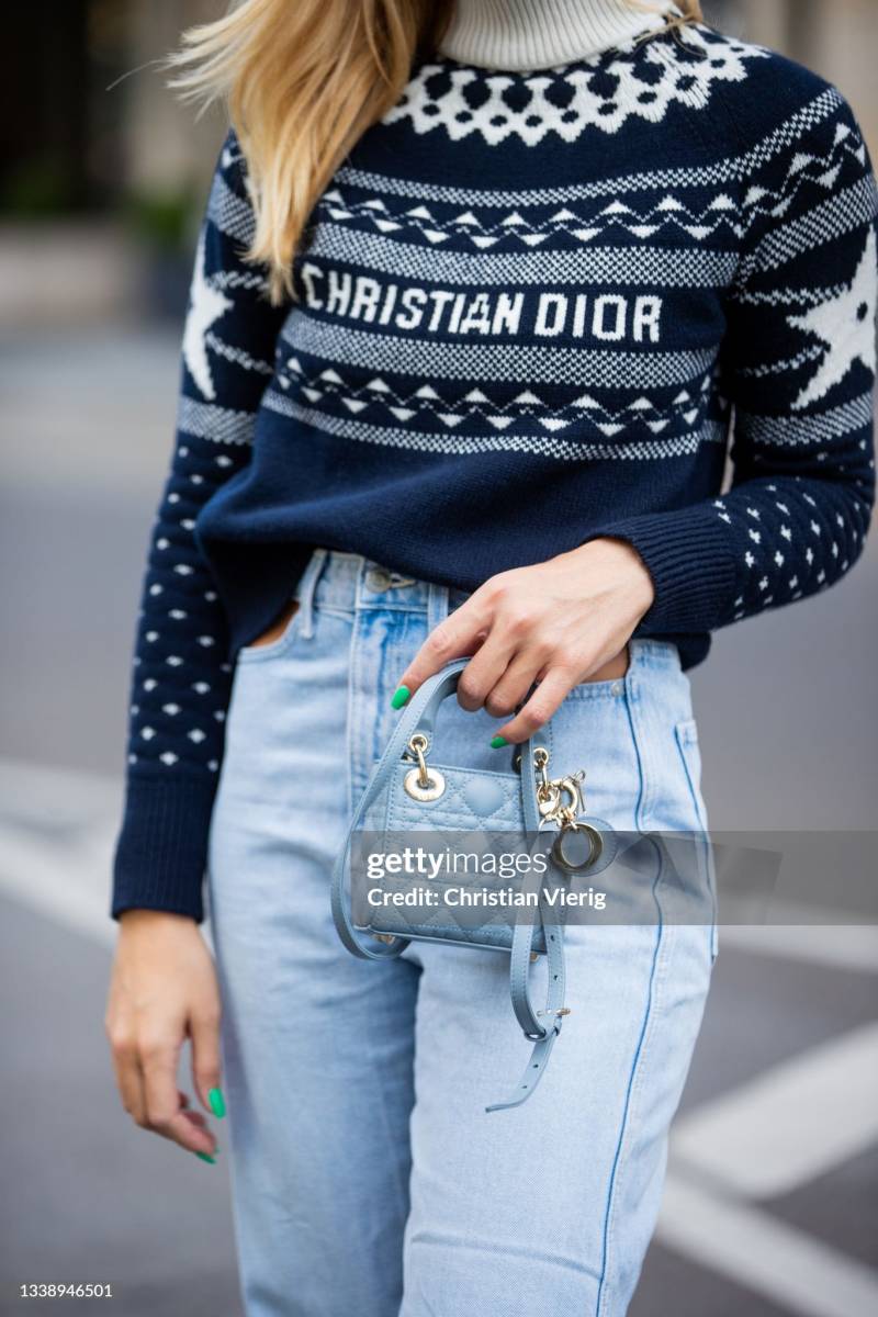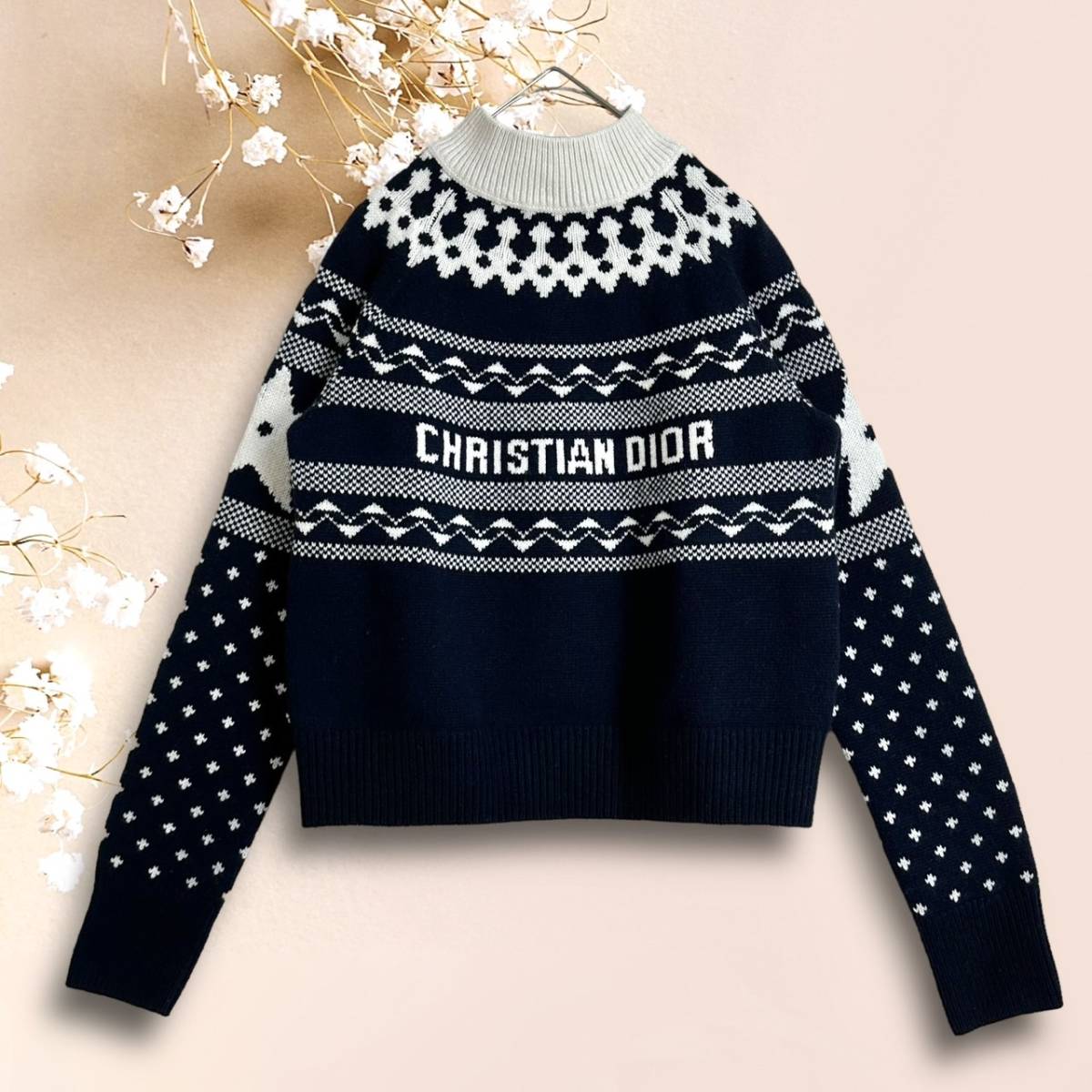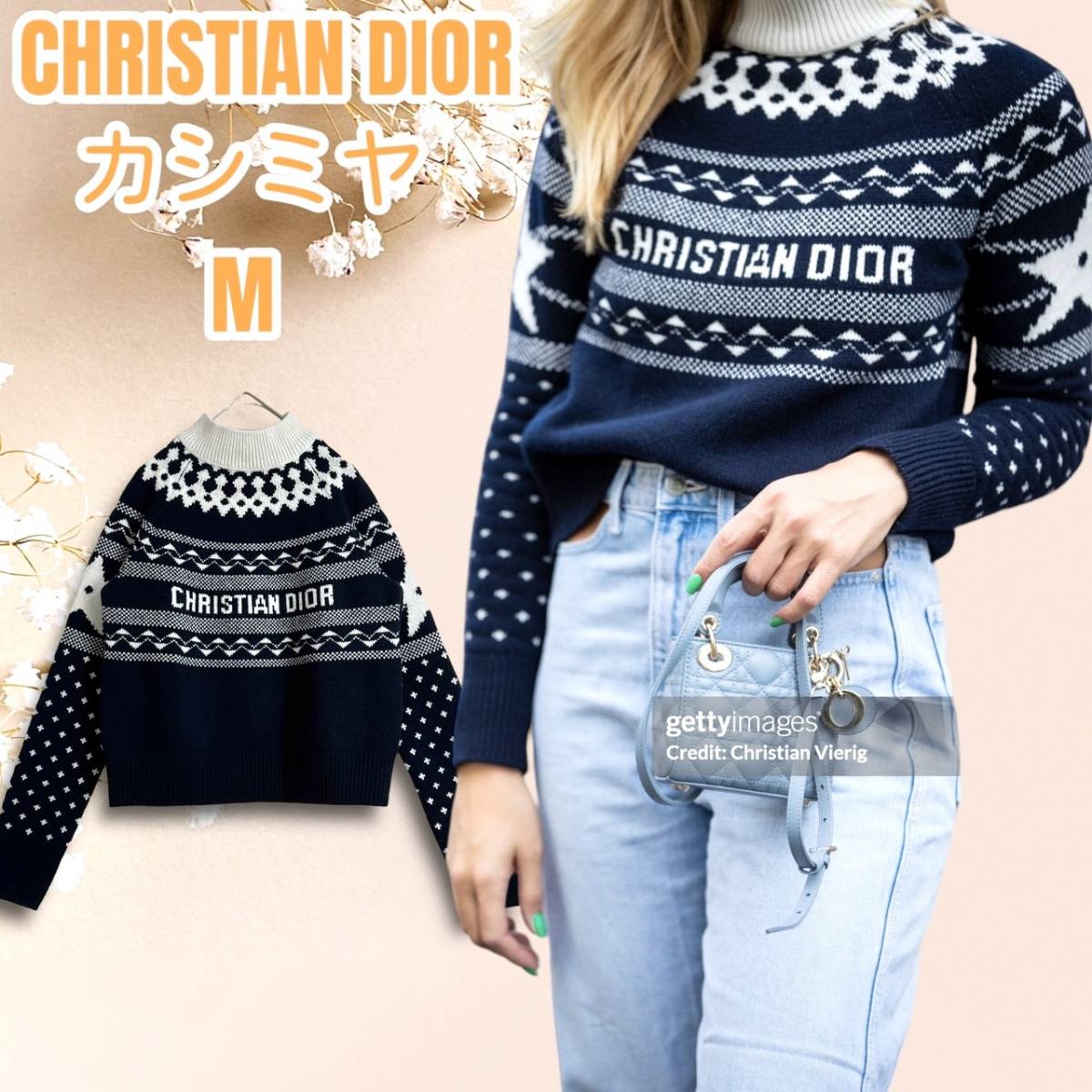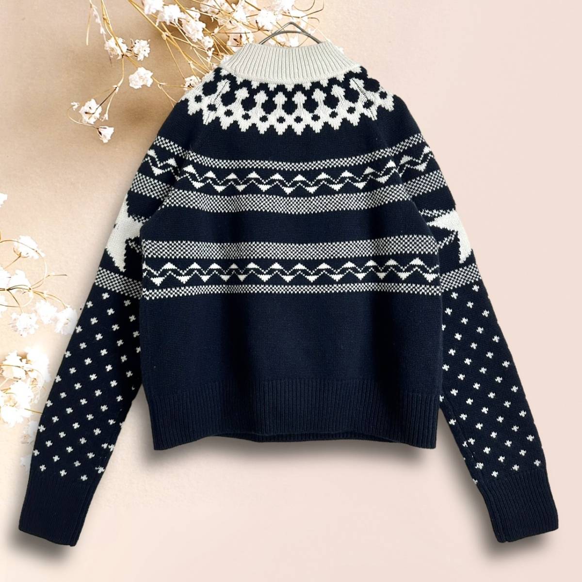 ☆即完売モデル☆CHRISTIAN DIOR クリスチャンディオール カシミヤ混 長袖 ニット ジャガード F38 クロップド ネイビー クリーニング済み