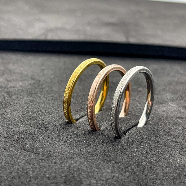 スターダスト加工のされたスリムなステンレスリングです。