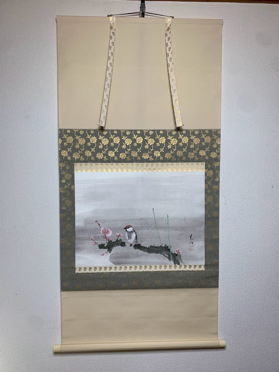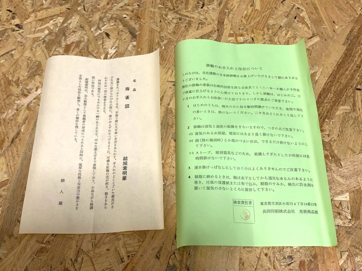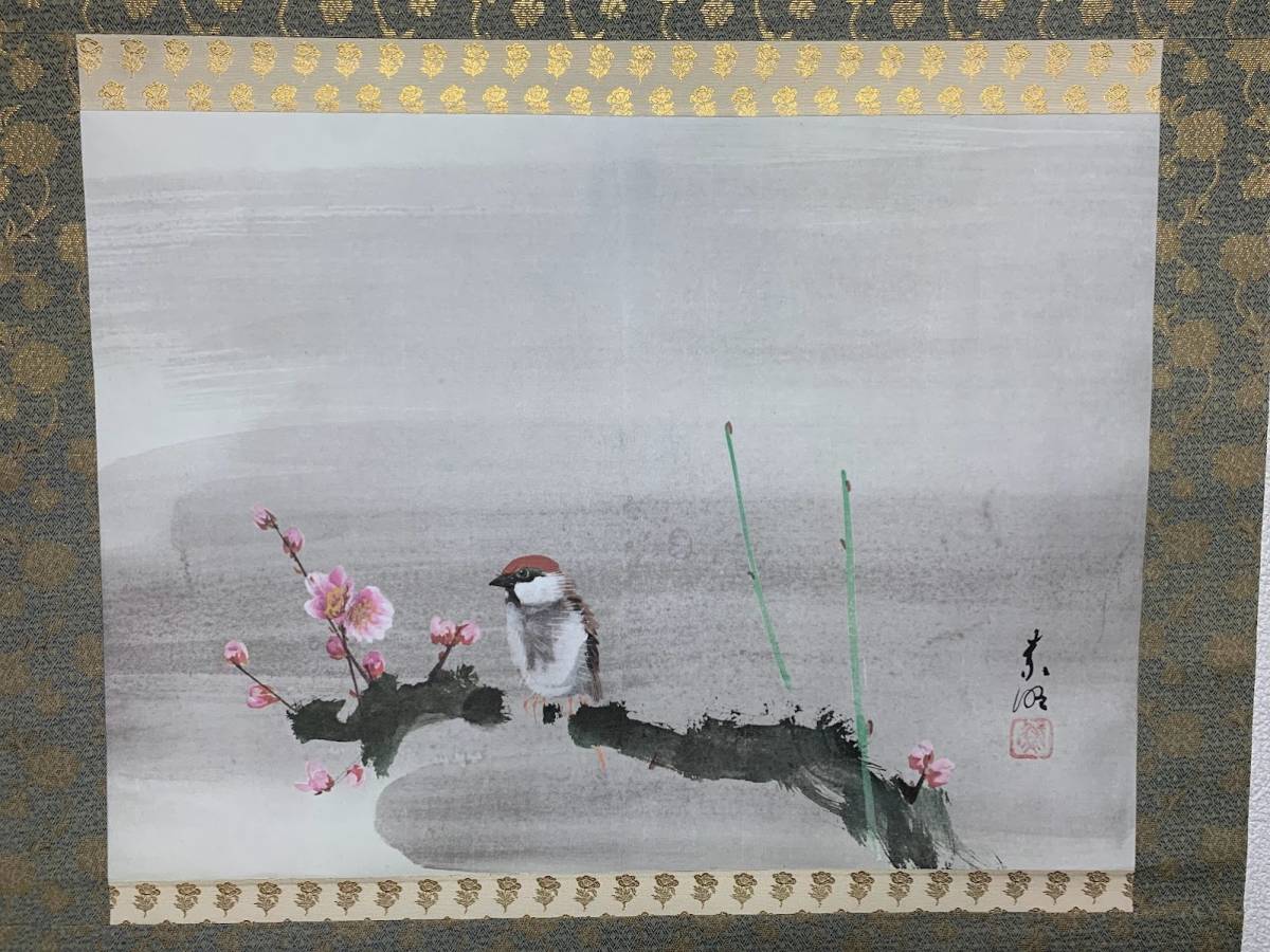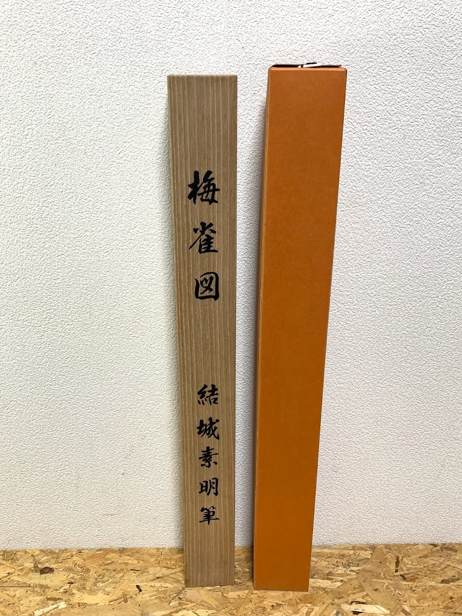 【模写】【 結城素明 筆 梅雀図 共箱 限定2000謹製中 1186番 】結城 素明 印刷工芸 掛け軸 日本画家