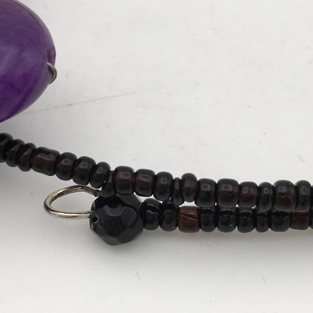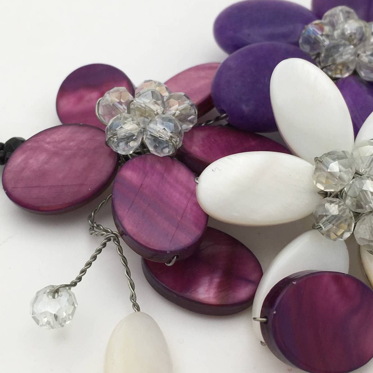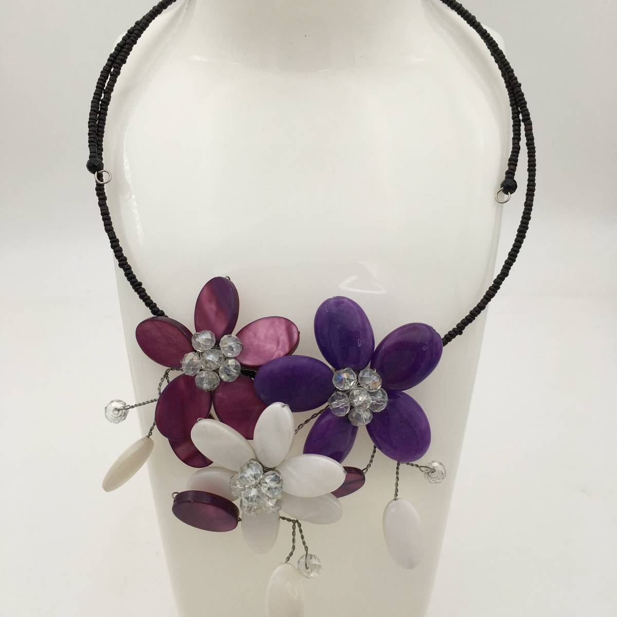 <新品>パープル シェル フラワー 花 ブラック ビーズ レディース ネックレス 約34~46cm 調節可能 結婚式 プレゼント パーティー
