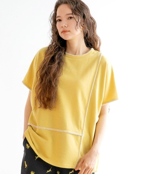 NIKO AND ニコアンド カットソー ツギハギステッチ ステッチワーク YLW サイズF