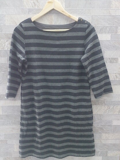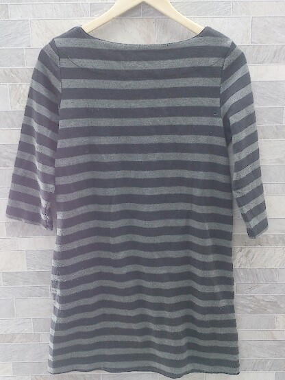 ◇ heliopole エリオポール ボーダー 長袖 ミニ ワンピース サイズ36 グレー ブラック レディース