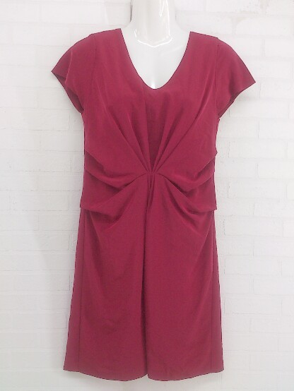 ◇ LAPIS LUCE PER BEAMS ラピスルーチェパービームス ギャザー 半袖 ミニ ワンピース サイズ36 ボルドー系 レディース P