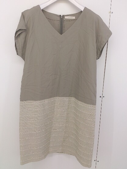 ◇ FRAMeWORK バックジップ 切替 Vネック ノースリーブ ミニ ワンピース グレージュ ベージュ レディース