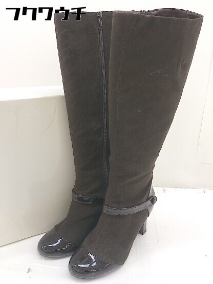 ■ ◎ Bridget Birkin ブリジットバーキン サイドジップ ラウンドトゥ ロング ブーツ 23.5cm ブラウン レディース