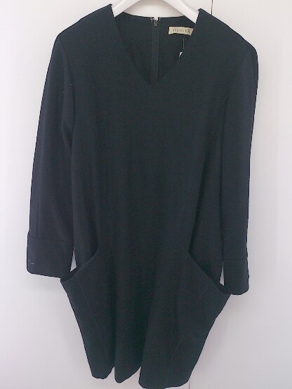 ◇ SYNCHRO X CROSSINGS シンクロクロッシング ウール混 長袖 ミニ ワンピース サイズ36 ブラック レディース