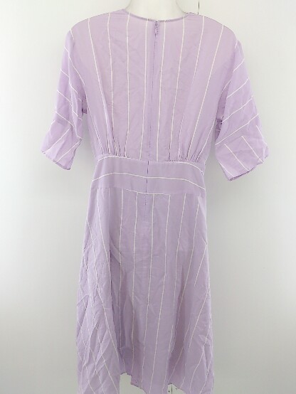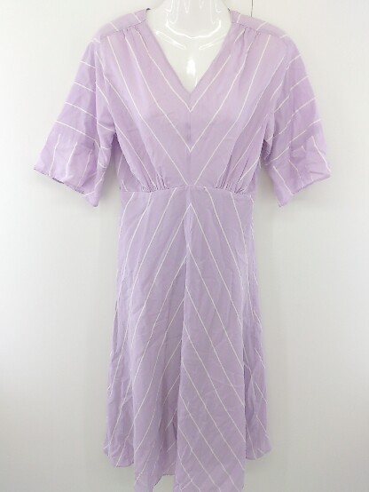 ◇ EMMEL REFINES エメルリファインズ 総柄 七分袖 膝下丈 ワンピース サイズM パープル ホワイト レディース