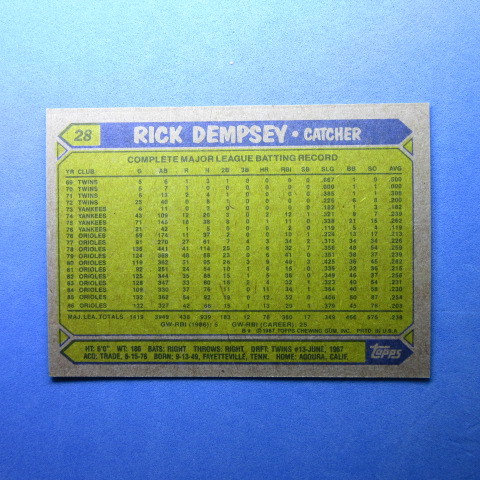 1987 Topps #28 Rick Dempsey