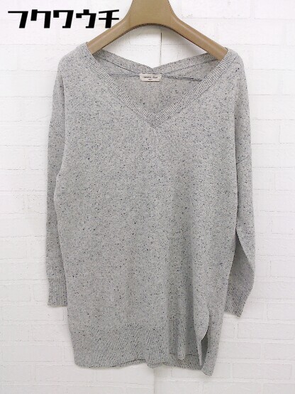 ◇ SM2 サマンサ モスモス Vネック スリット ウール ニット 長袖 セーター サイズF グレー アイボリー レディース