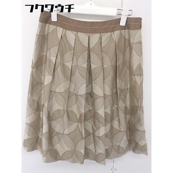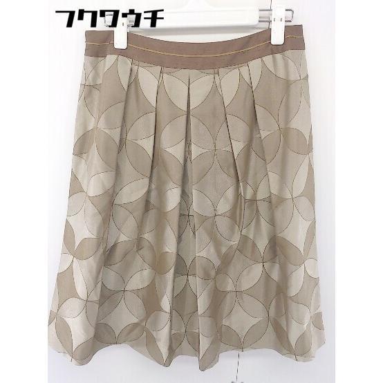 ◇ AMACA アマカ 総柄 ジップアップ 膝丈 フレア スカート サイズ 40 ベージュ ブラウン レディース