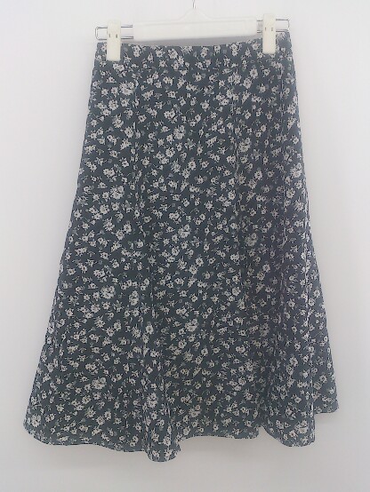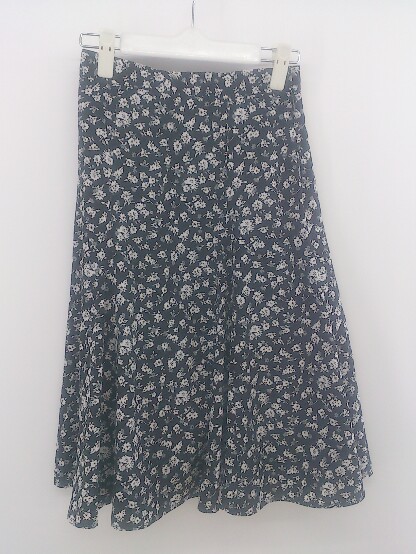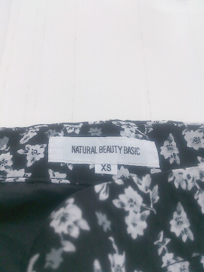 ◇ NATURAL BEAUTY BASIC 花柄 膝下丈 フレア スカート サイズXS ブラック ホワイト系 レディース P