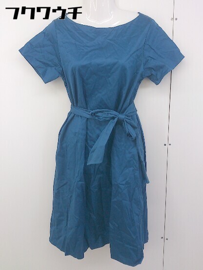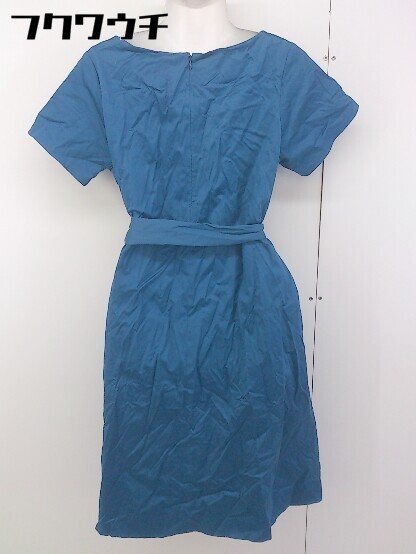 ◇ ◎ Demi-Luxe BEAMS デミルクス ビームス ウエストリボン付 半袖 膝丈 ワンピース サイズ38 ブルー レディース