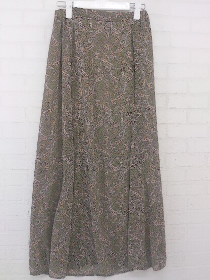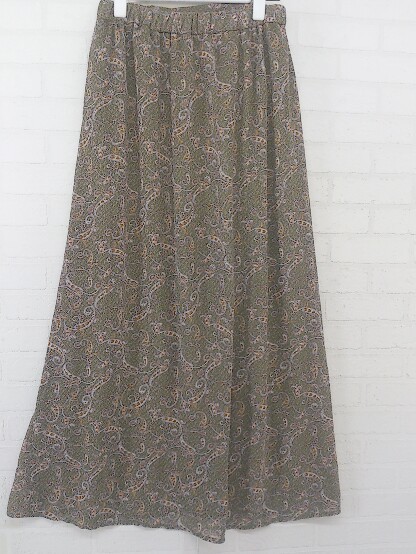 ◇ ehka sopo エヘカソポ 総柄 ロング フレア スカート サイズF カーキ系 ベージュ系 マルチ レディース P