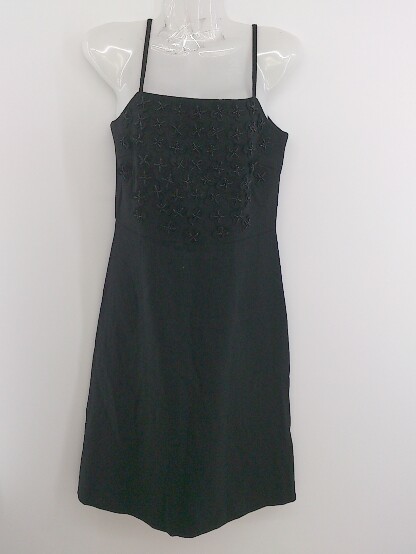 ◇ Content Contenu コントンコントニュ 装飾 ウール100% 膝丈 キャミソール ワンピース ブラック レディース P