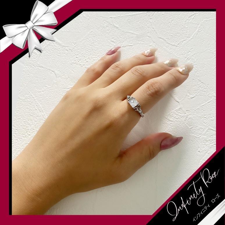 (R030S)14号 女性の繊細デザイン真ん中四角クリスタルリング 爪留め仕様
