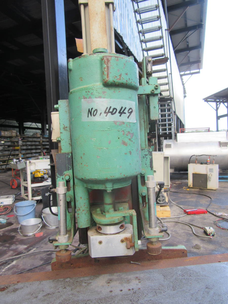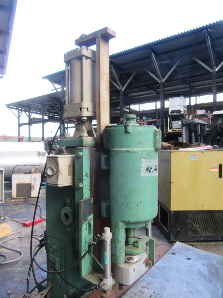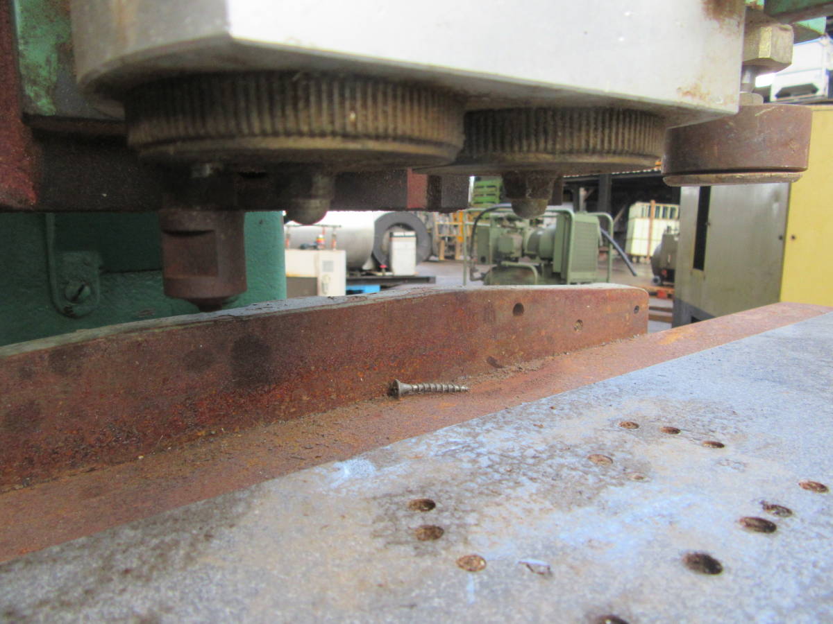 まず、エアーのソレノイドバルブのプラスチックの口金が割れてるが、型式があるので注文はできるとおもいます。 タイヨウのSR551-RE22R型です。 エアー配線も切れてたので直接エアーを入れててテストしました。エアーシリンダーの動きは万力・メインシリンダーともに良好。 ソレノイドバルブとエアー配管の手直しでいけそうだ。  万力のストロークは100㎜。 天板の高さ調整ストロークは150㎜。
