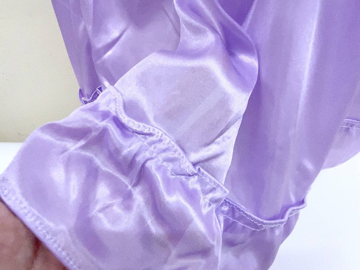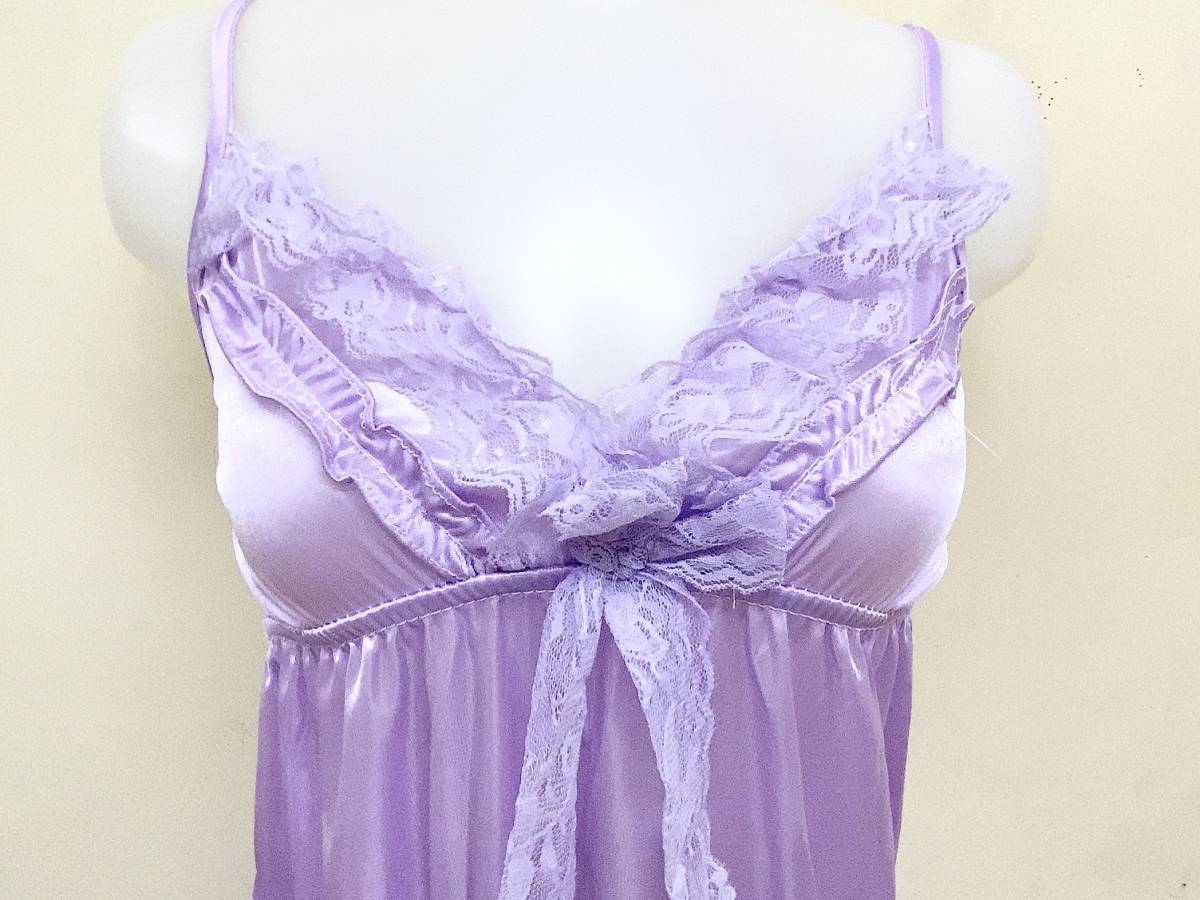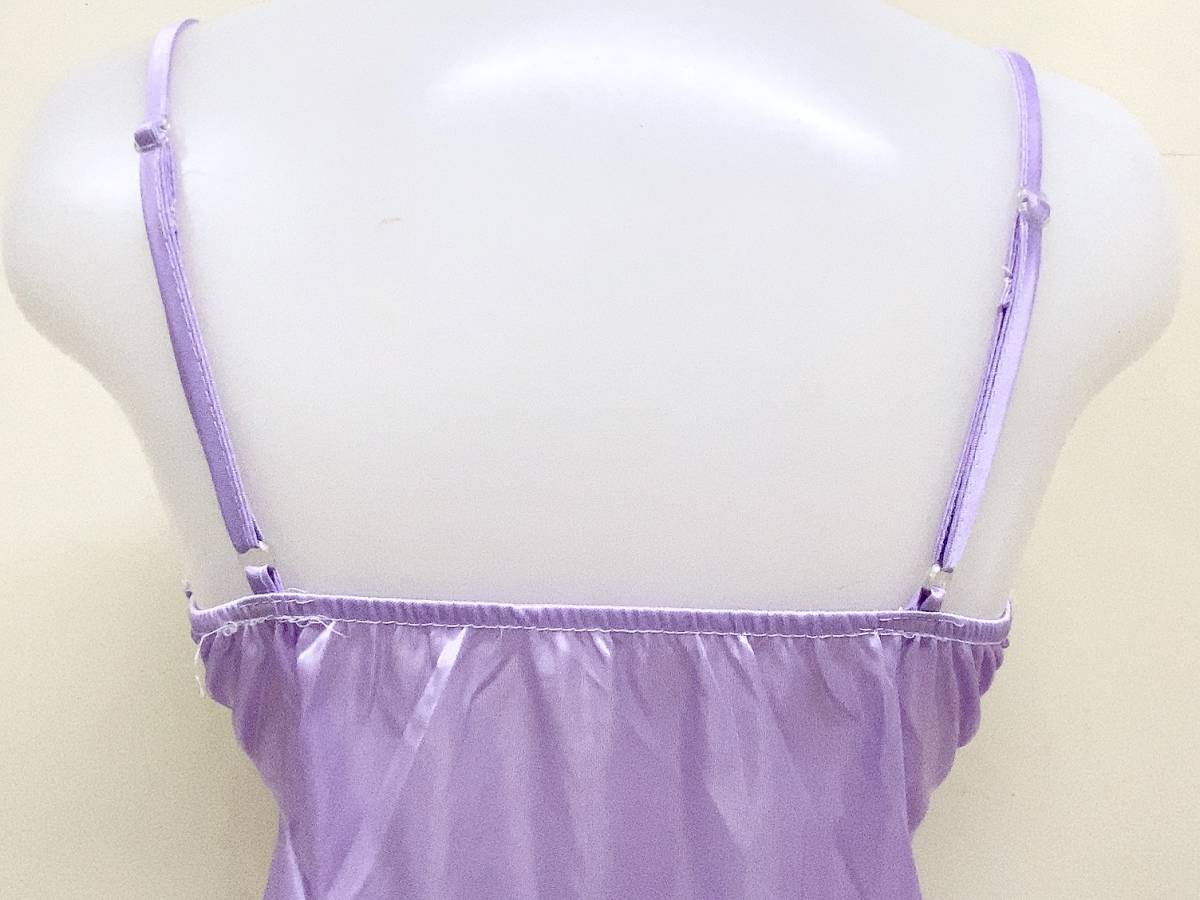 ライトバイオレット レディース パジャマ キャミソール ワンピース アクリル 紫 パープル 調節ストラップ ルームウェア リボン レース