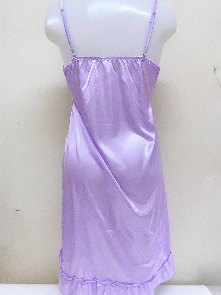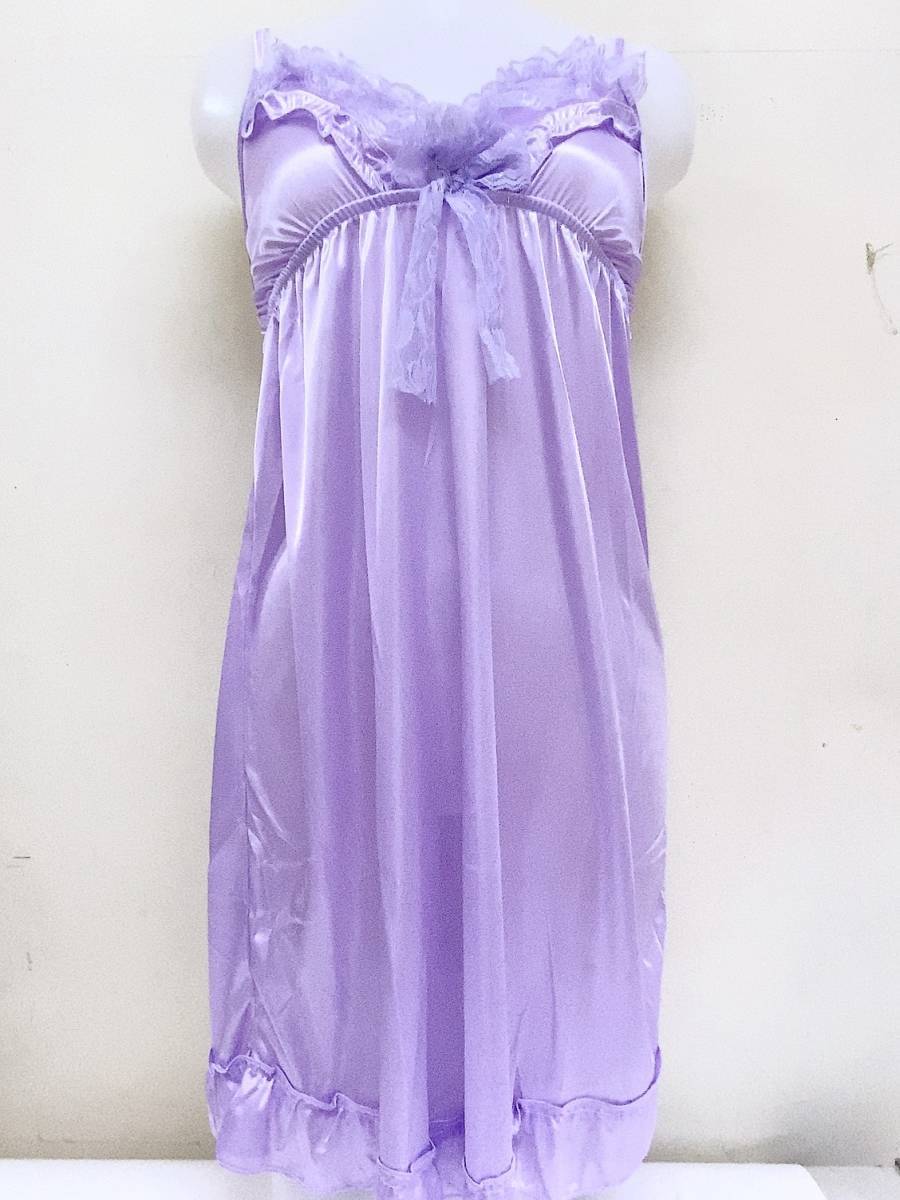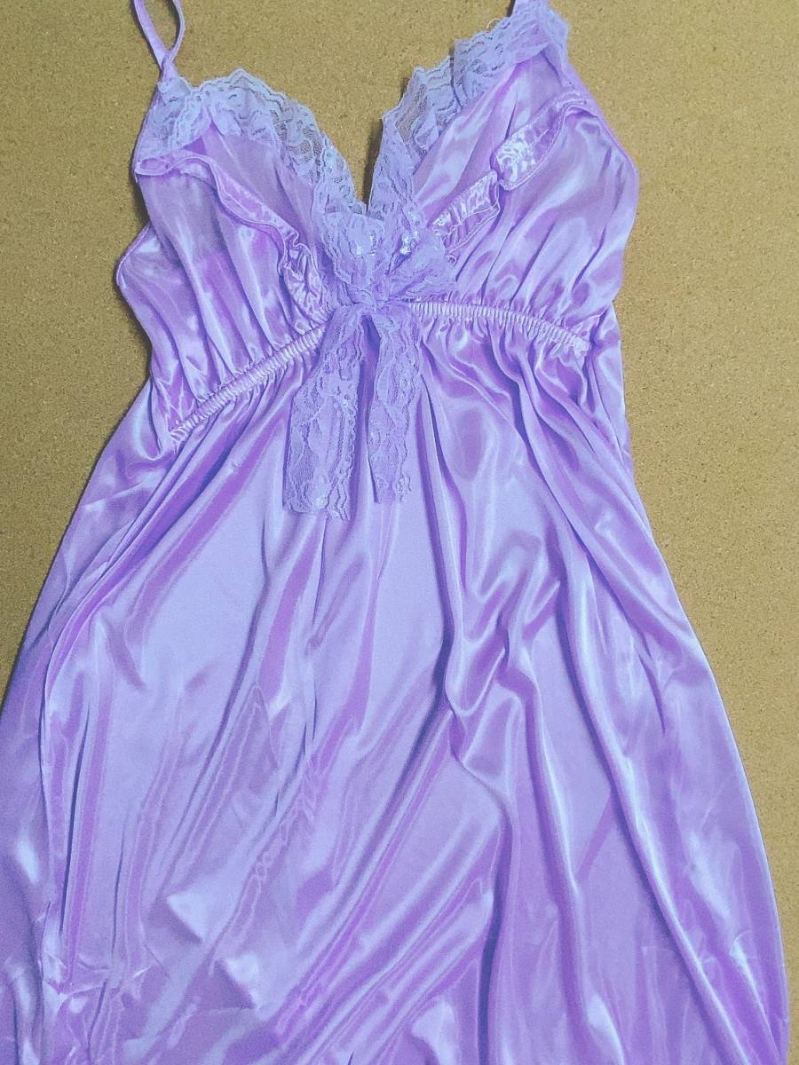 ライトバイオレット レディース パジャマ キャミソール ワンピース アクリル 紫 パープル 調節ストラップ ルームウェア リボン レース