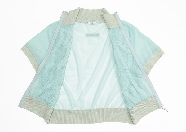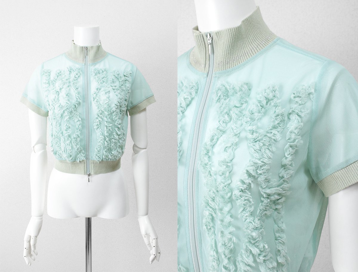 Heal creek ◆ フロントデザイン メッシュ 半袖 ブルゾン グリーン サイズ40 ジップアップ カーディガン ショート丈 ヒールクリーク ◆K2C