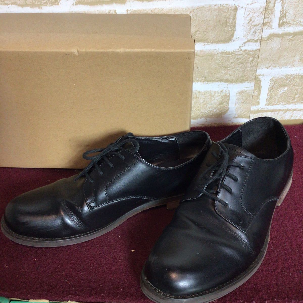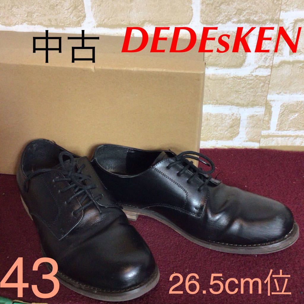 【売り切り!送料無料!】A-342 DEDEsKEN!ビジネスシューズ!黒!ブラック!43 26.5cm位!仕事!冠婚葬祭!七五三!入園入学式!卒園卒業式!中古!