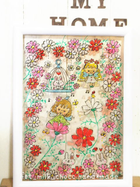 ★NO.A51★ステンドグラス風・A4サイズ・秋桜・コスモス・花・秋・妖精・女の子・飾り・アート・ハンドメイド・インテリア・雑貨・うさぎ