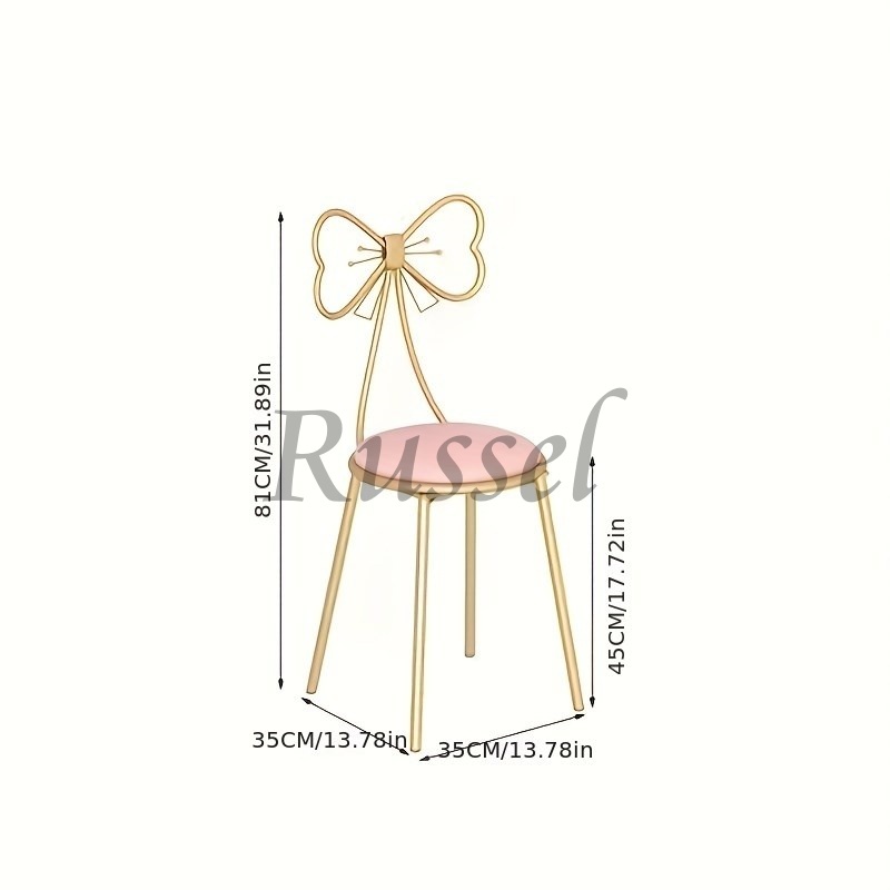 チェア 椅子 リボン ピンク 化粧椅子 可愛い ラブリー ゴールデンメタル 背もたれ付き ベルベット 女の子 女性向け ラグジュアリー