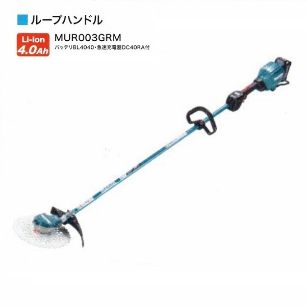 マキタ製の40Vmax充電式草刈機のMUR003GRM(ループハンドル仕様)です。