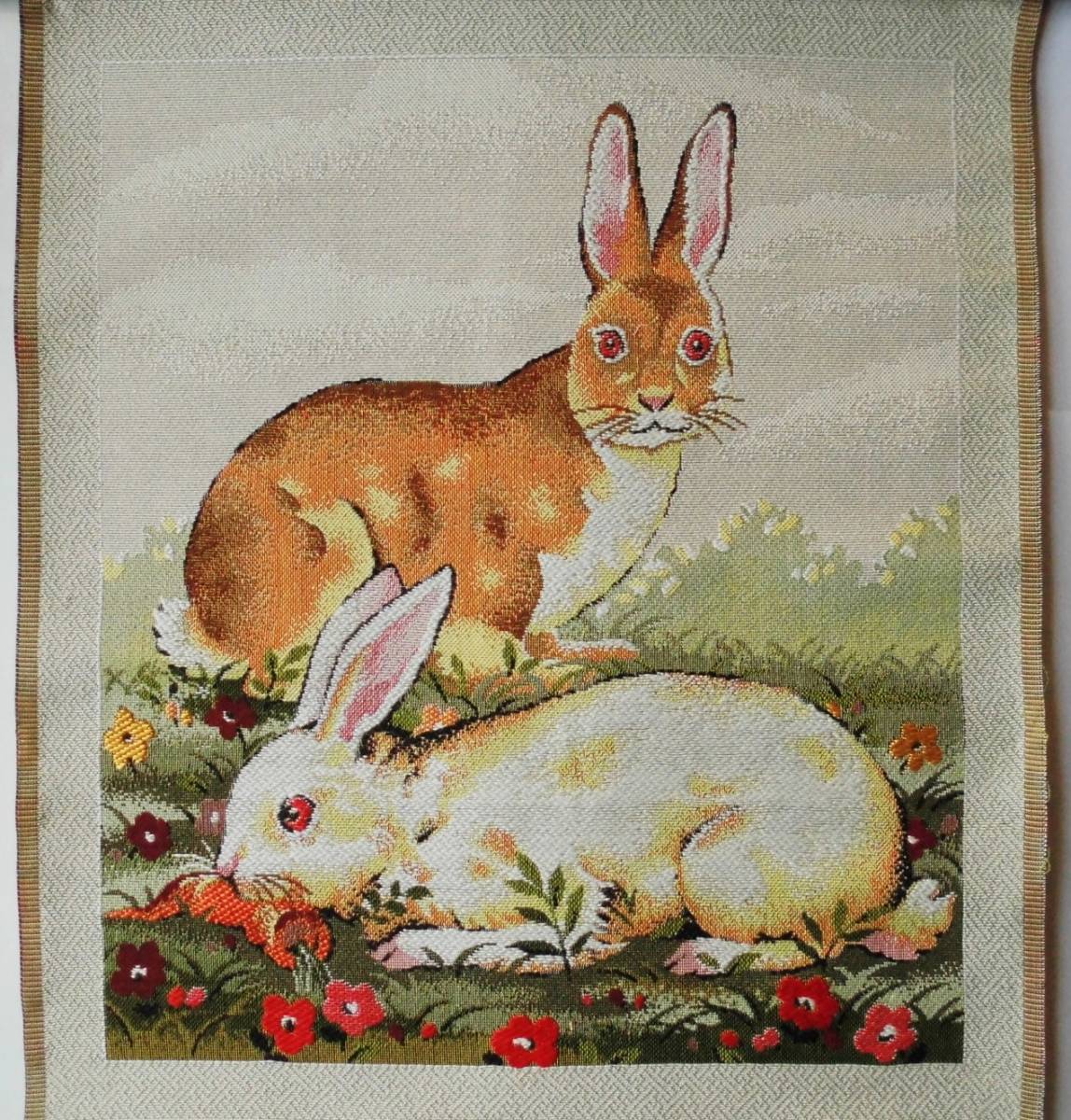 ☆1987年・カレンダー・高級美術壁掛・兎★刺繍・織物・ゴブラン織★タペストリー・掛け軸★