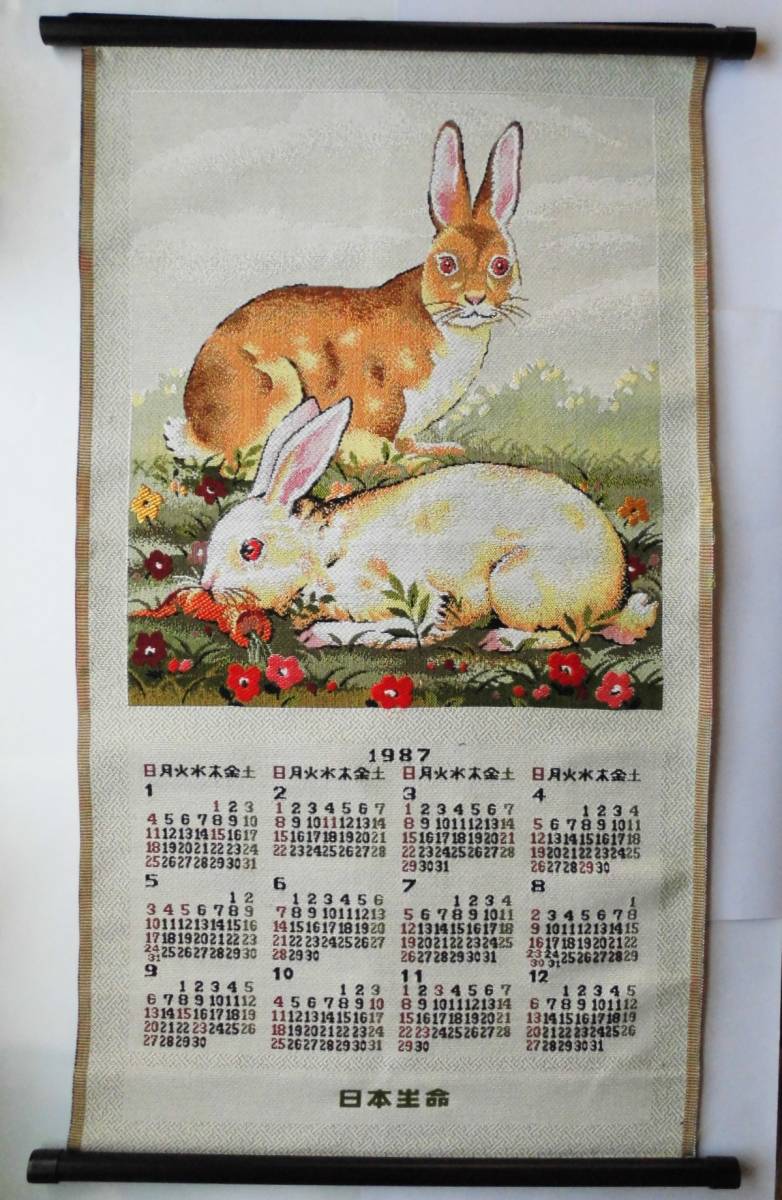 1987年・カレンダー・高級美術壁掛・兎★刺繍・織物・ゴブラン織★タペストリー・掛け軸★