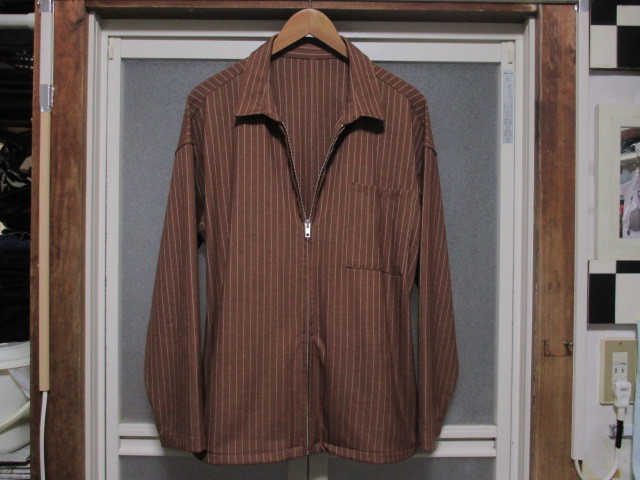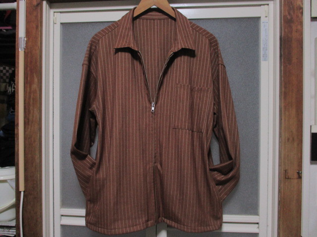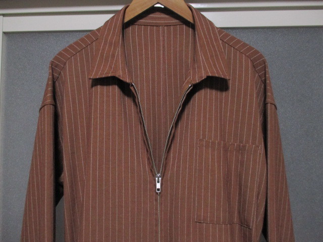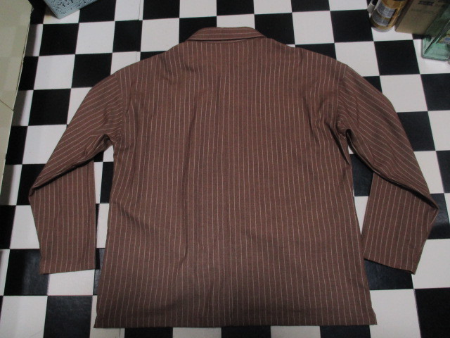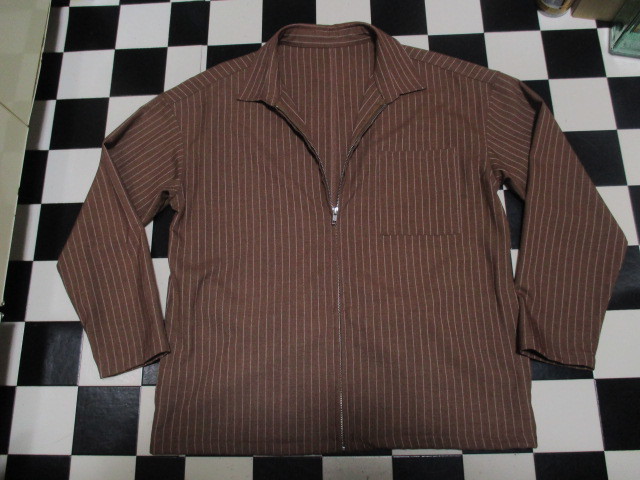 オーバーサイズ ストライプジャケット M 茶 ブラウン×ホワイト ブルゾン ガレージワークウェア