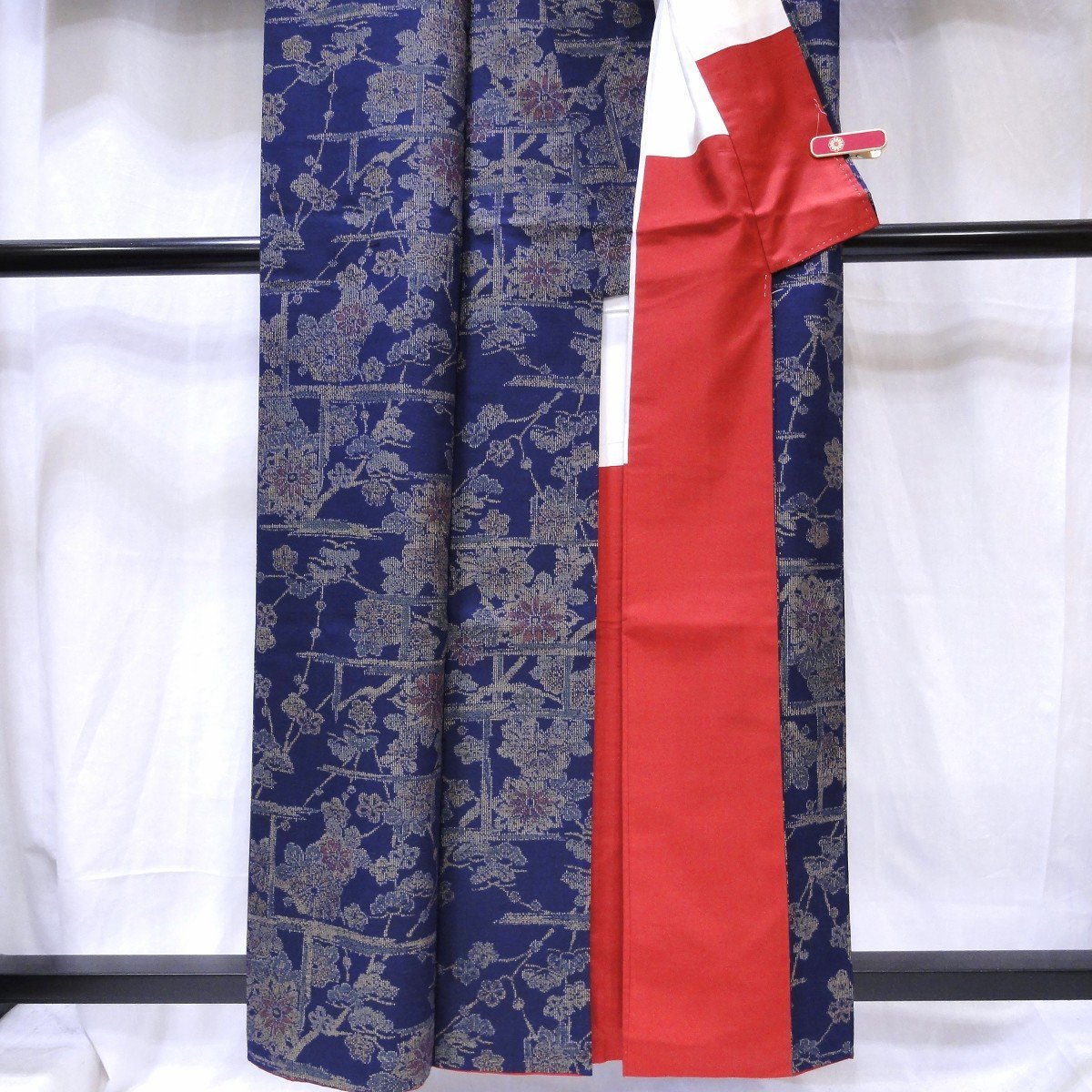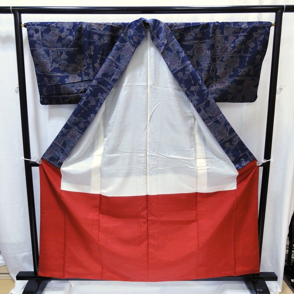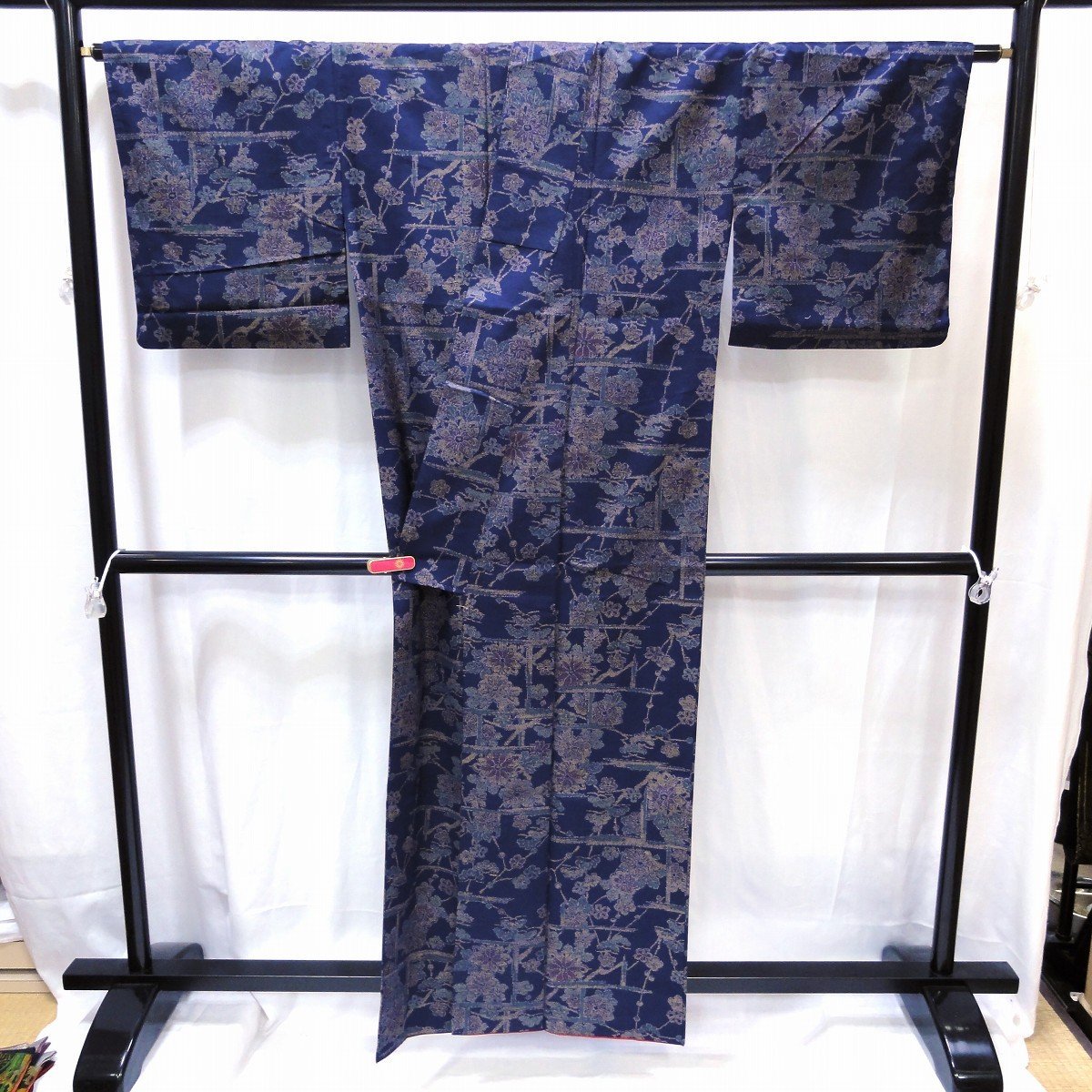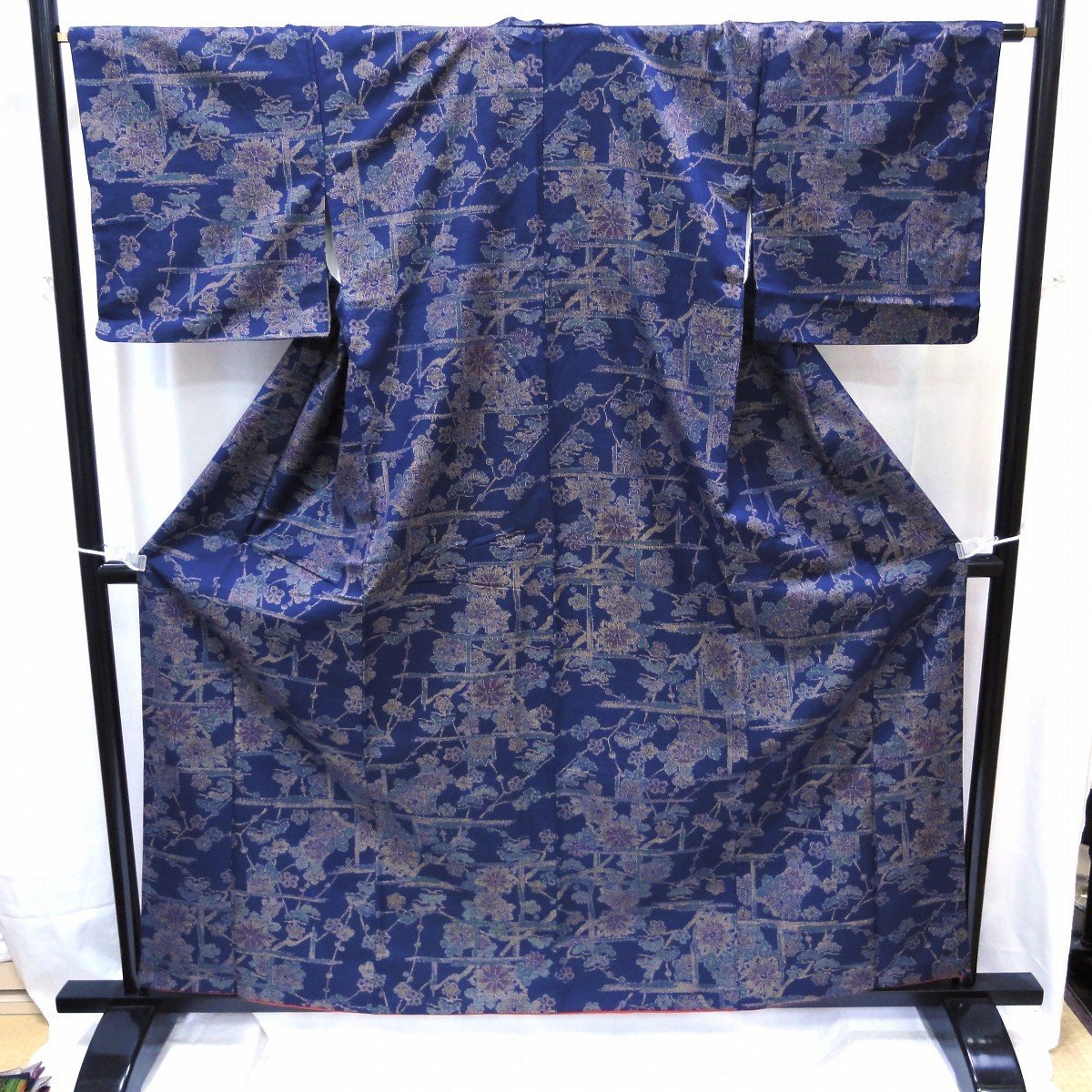 身丈:約158㎝、袖:約45㎝、裄:約65㎝、後幅:約30.5㎝、前幅:約24㎝、状態ランク:C、衿裏に緑青ヨゴレ、シミあり(画像参照)