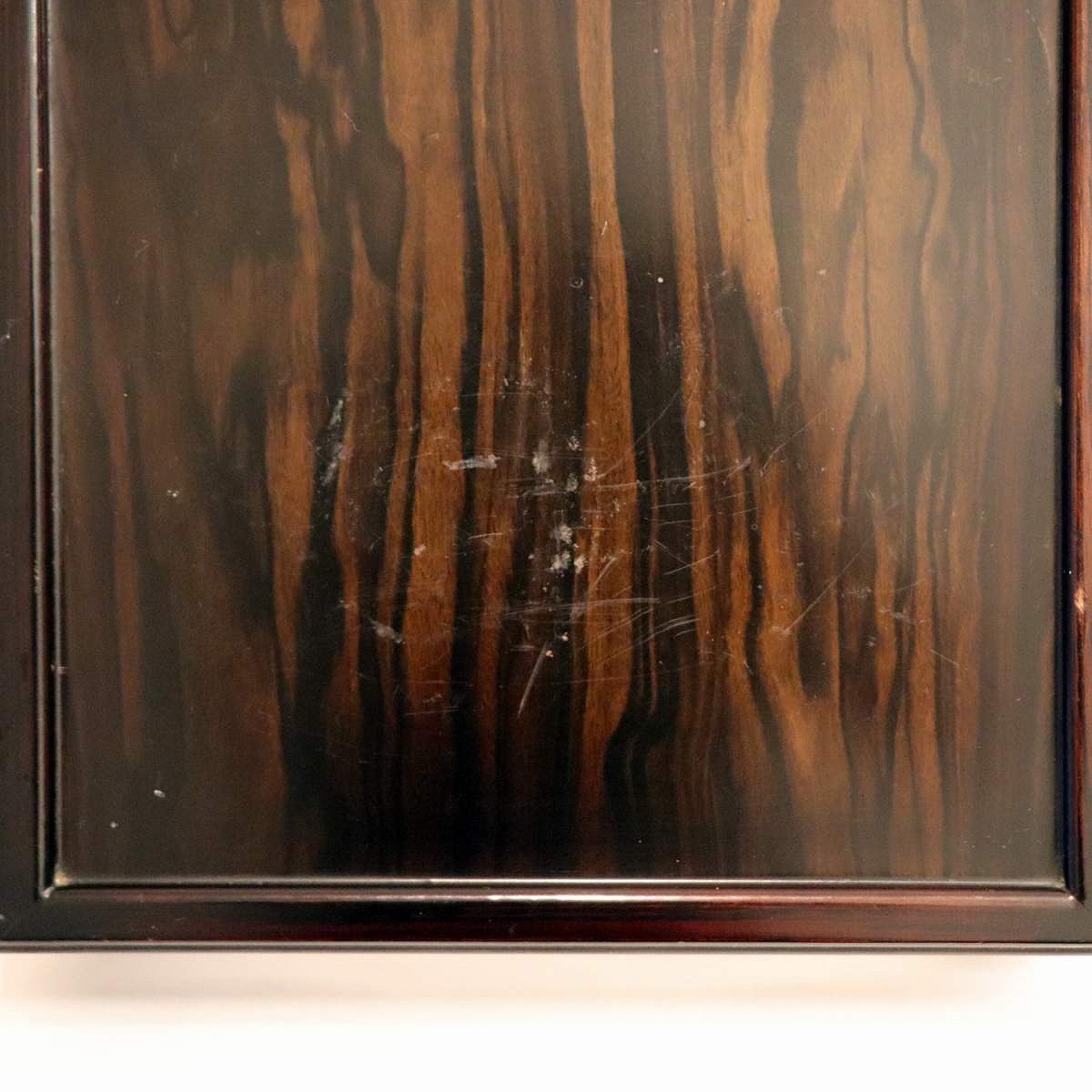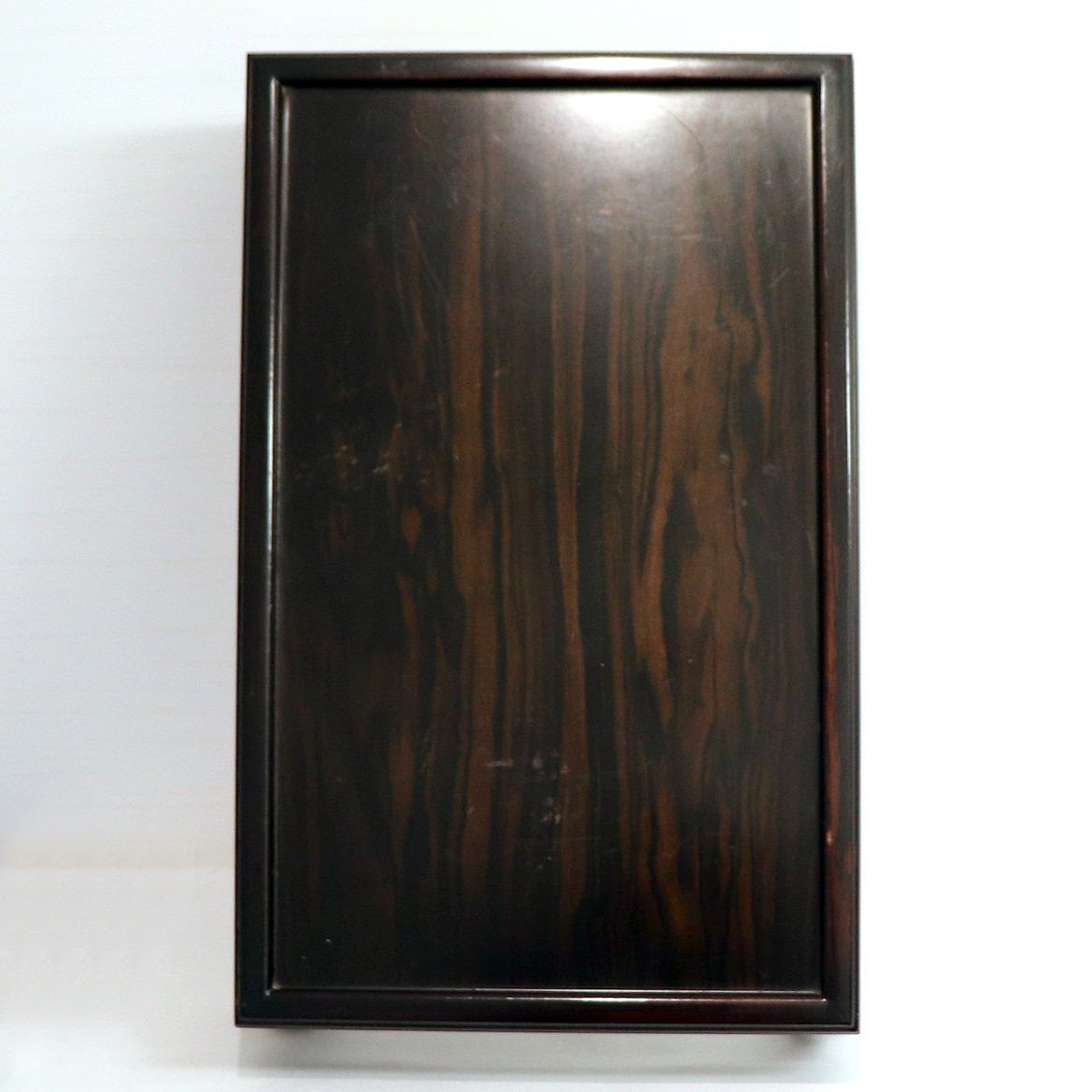 幅:約548mm、奥行:約342mm、高さ:約133mm、黒檀かも知れませんが材質不明です。キズ汚れあり。状態ランク:C