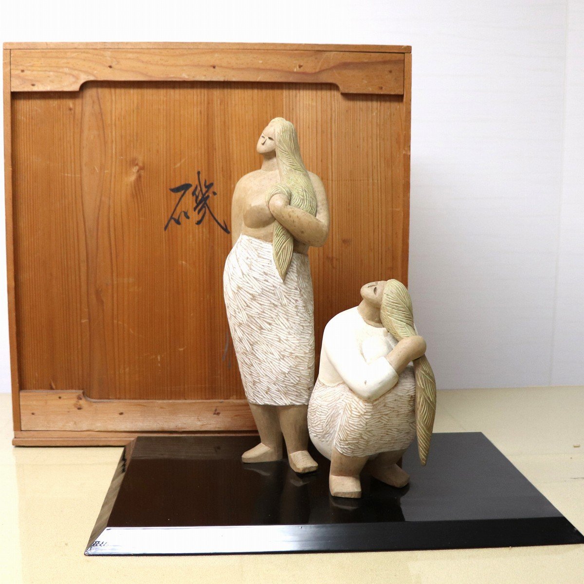 共箱寸:約478×330×482㎜、状態ランク:D、共箱、人形、ともにシミ汚れあり