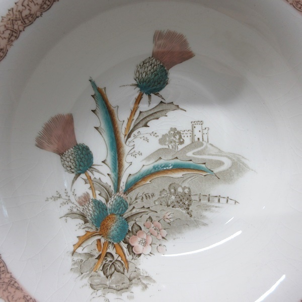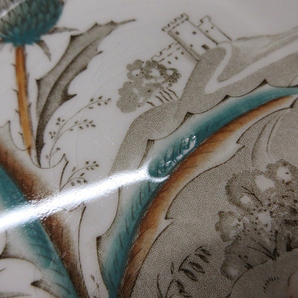 長閑な風景柄にアザミのハンドペイントが可愛らしいお品です。