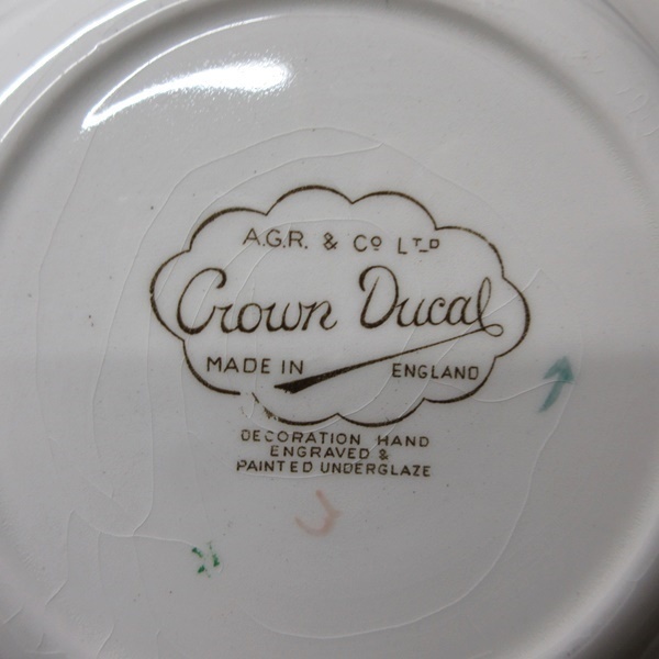 A G Richardson and Co Ltdは、「陶器の里」として有名なストーク・オン・トレントのTunstall &Cobridgeにて1915年~1974年まで続きました。Crown Ducalがトレードマークです。