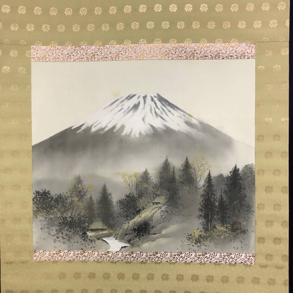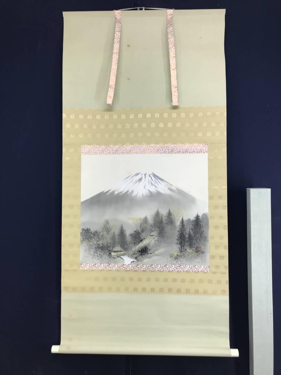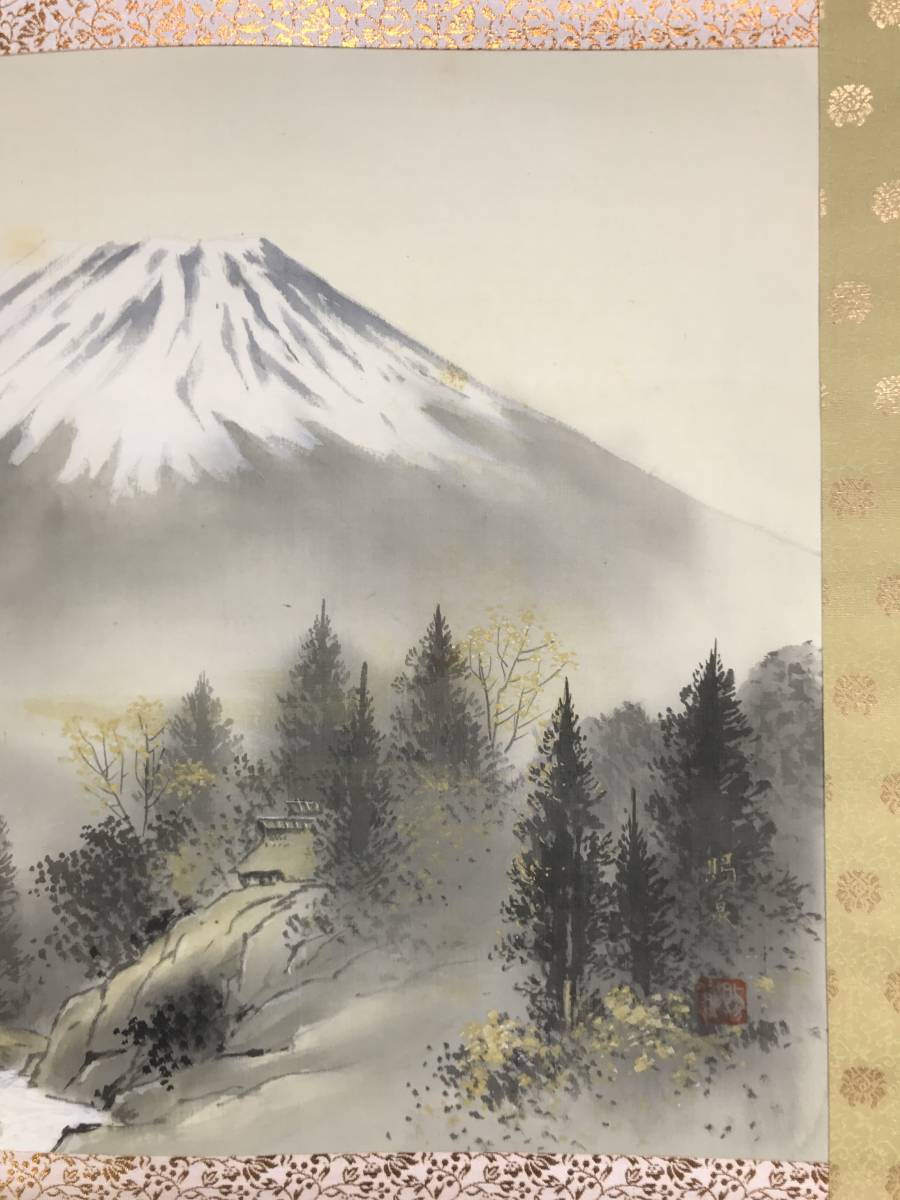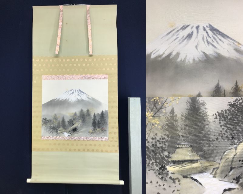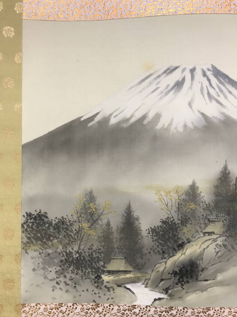 真作/郡賜泉/富士山水図/秀峰晴日/山水図/山村図/横物/掛軸☆宝船☆AE-304
