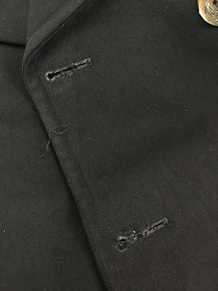 防水加工が施されたガッシリとした厚手のメルトンウール地を使用した段違いの防寒性を誇るUS NAVY P-コート。