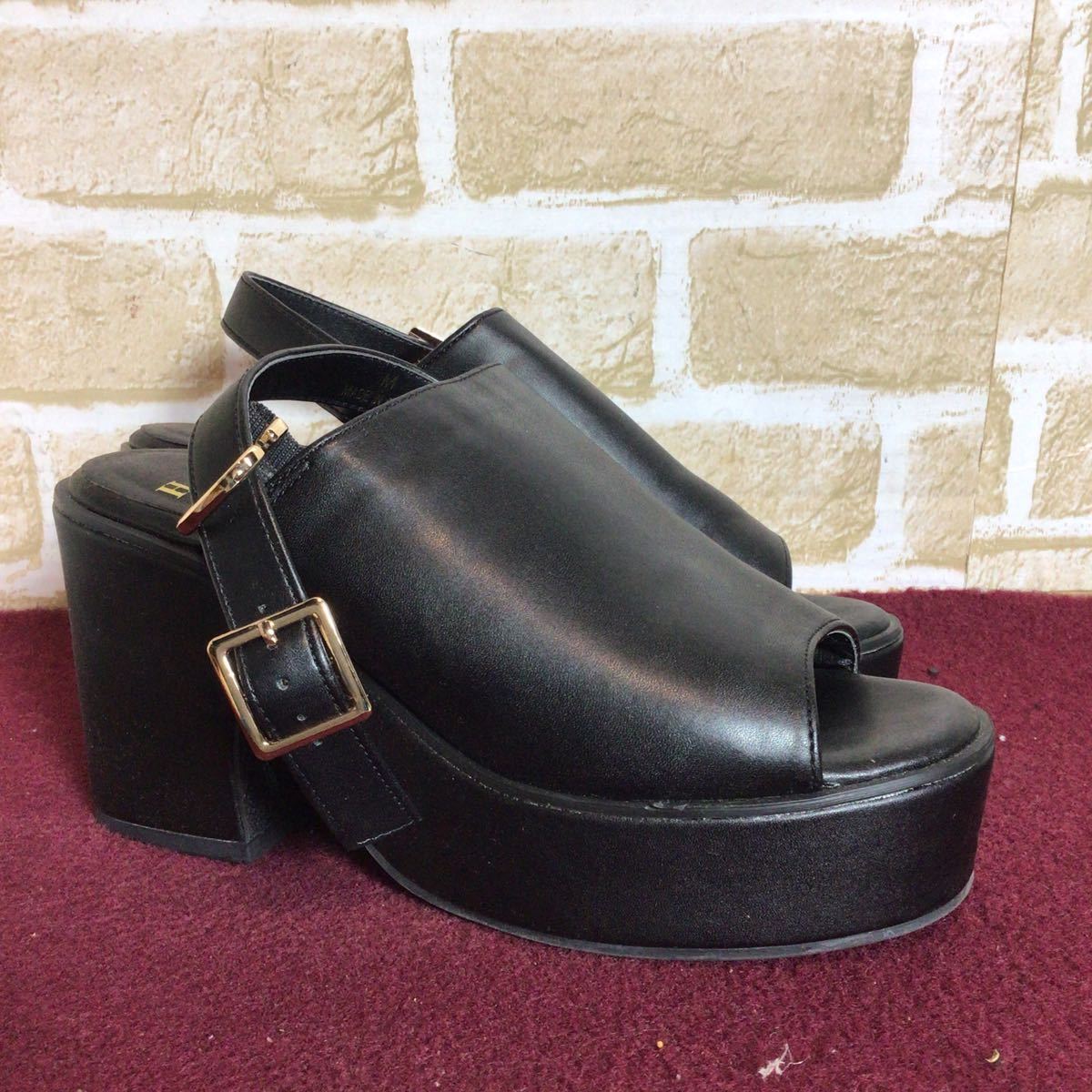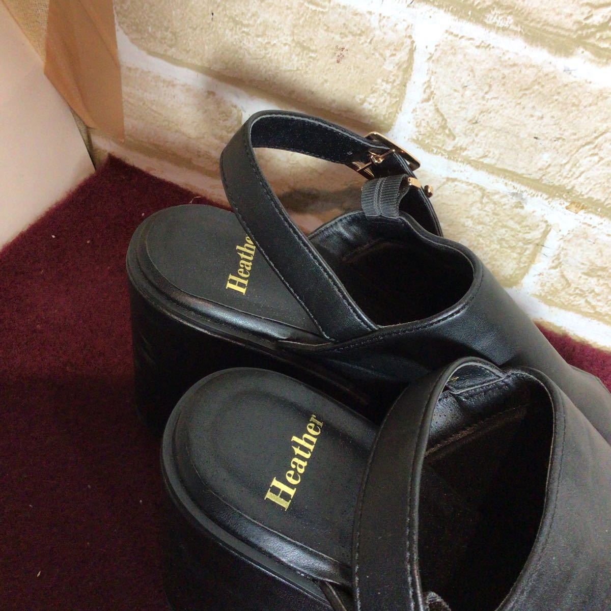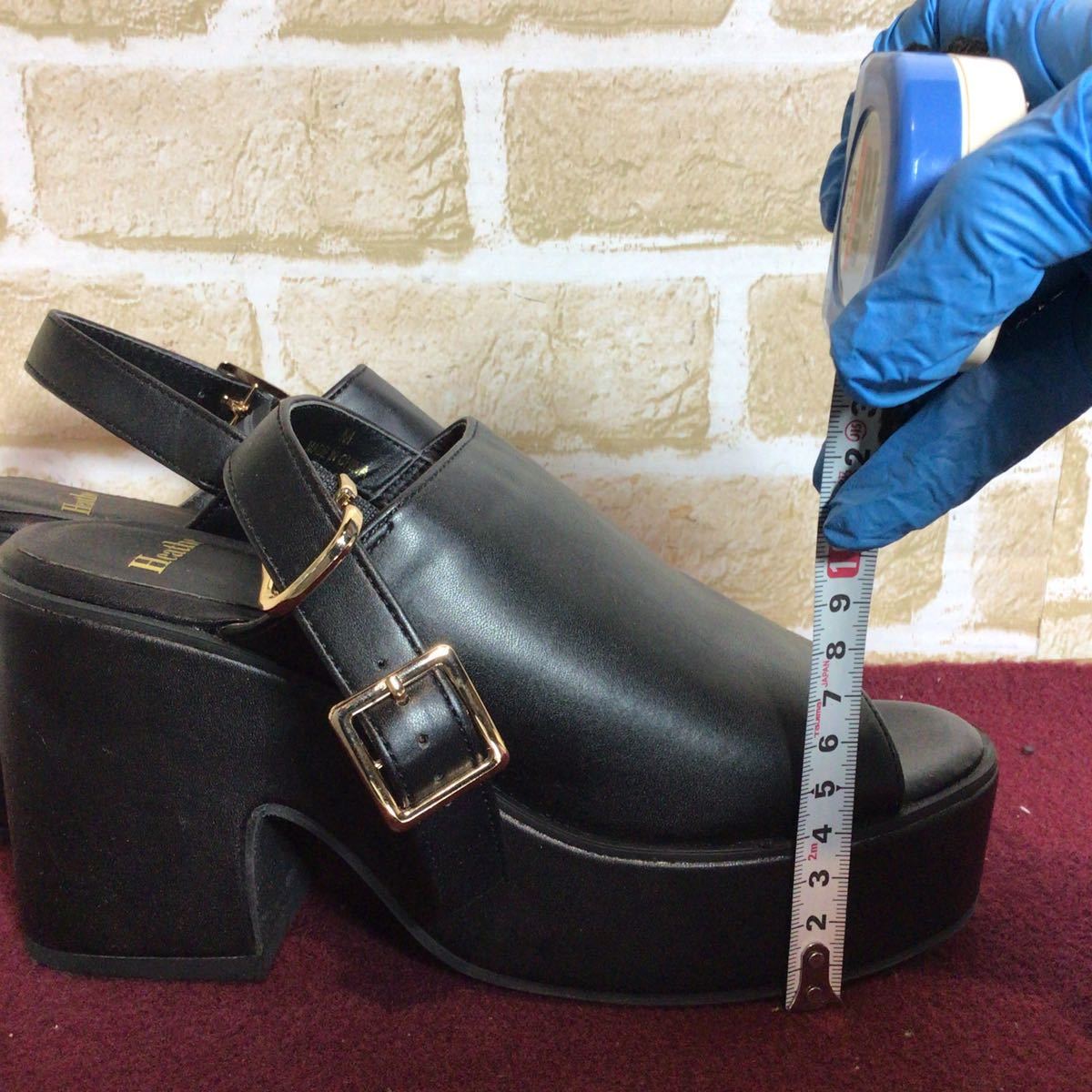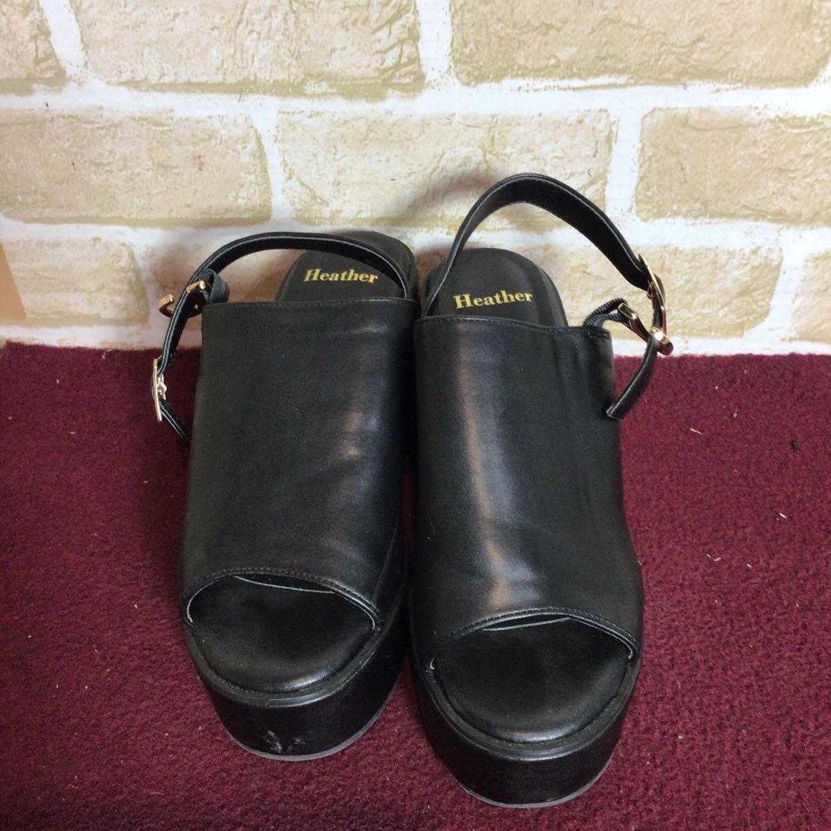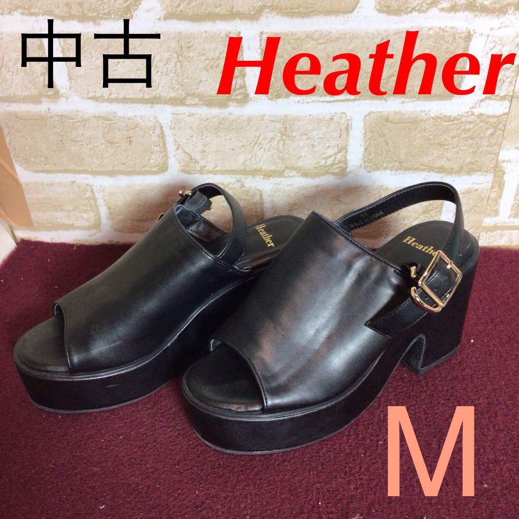 【売り切り!送料無料!】A-340 Heather!厚底サボサンダル!サイズM 23.0cm位!黒!ブラック!アンクルストラップ付!ヒール10.0cm!前厚4.0cm!中古