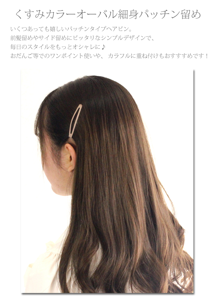 商品説明 | いくつあっても嬉しいパッチンタイプヘアピン。 前髪留めやサイド留めにピッタリなシンプルデザインで、毎日のスタイルをもっとオシャレに♪ おだんご等でのワンポイント使いや、カラフルに重ね付けもおすすすめです^-^ お得な5個セット、10個セット販売しております。 |