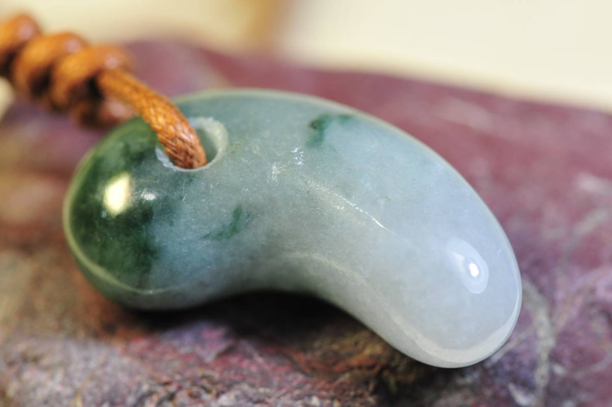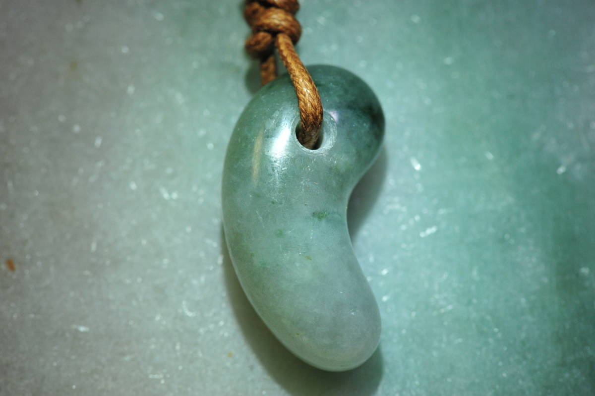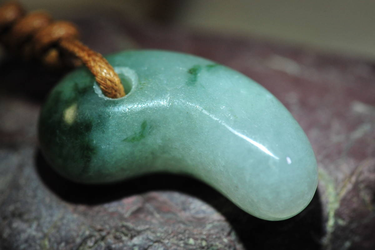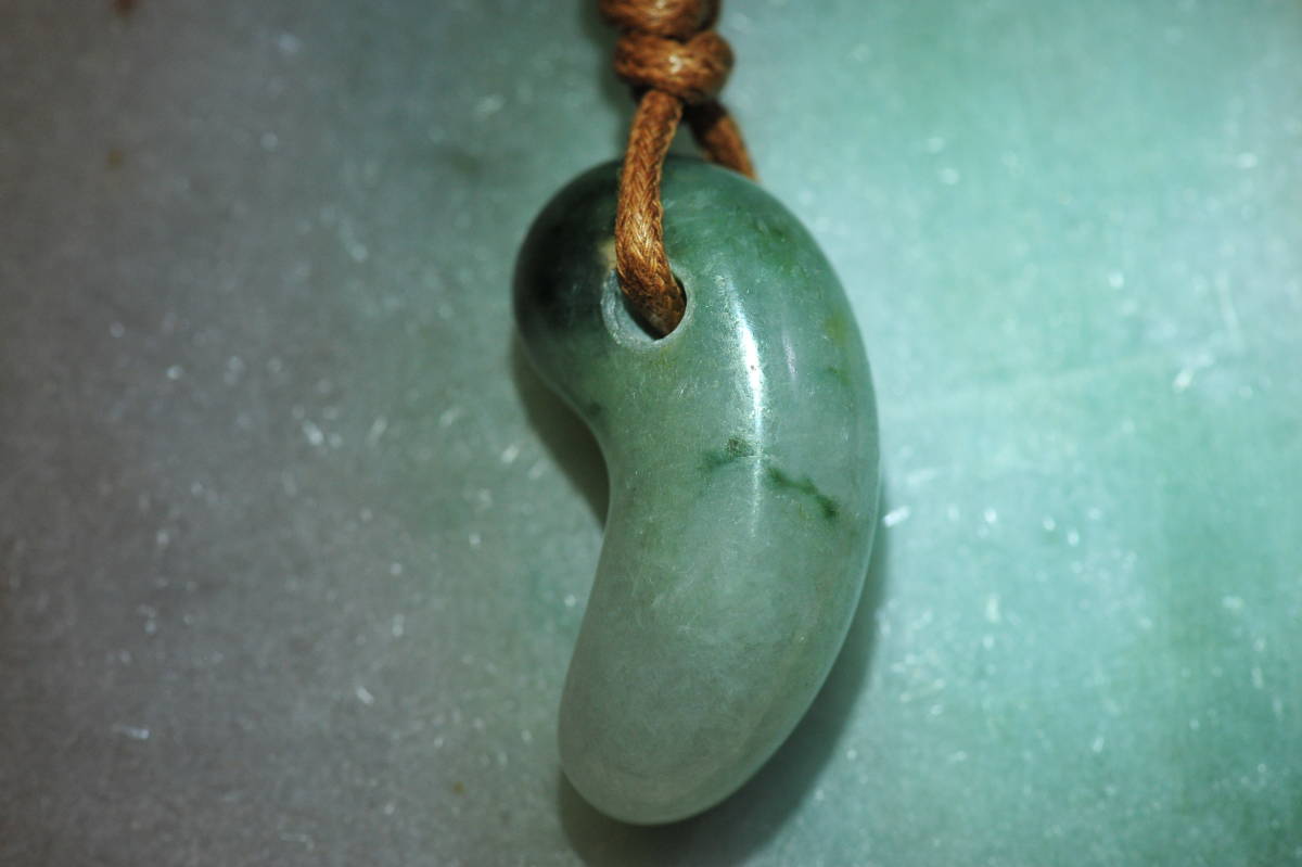 ミャンマー産翡翠を使って、日本国内で製作された翡翠の勾玉です。