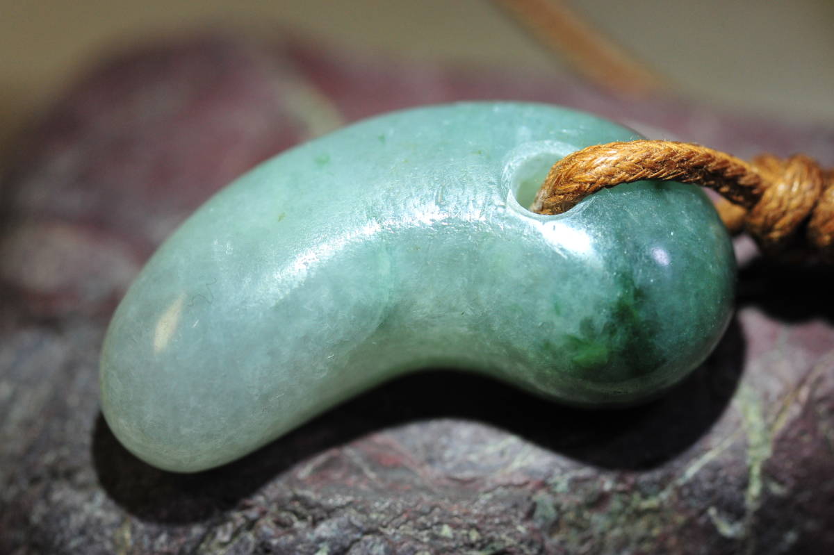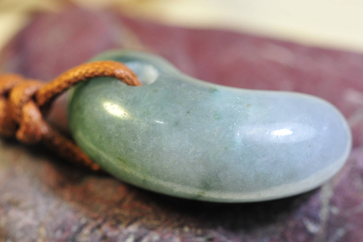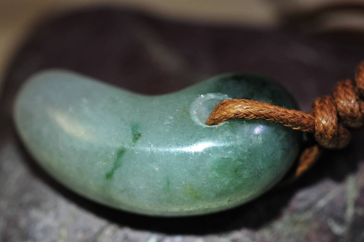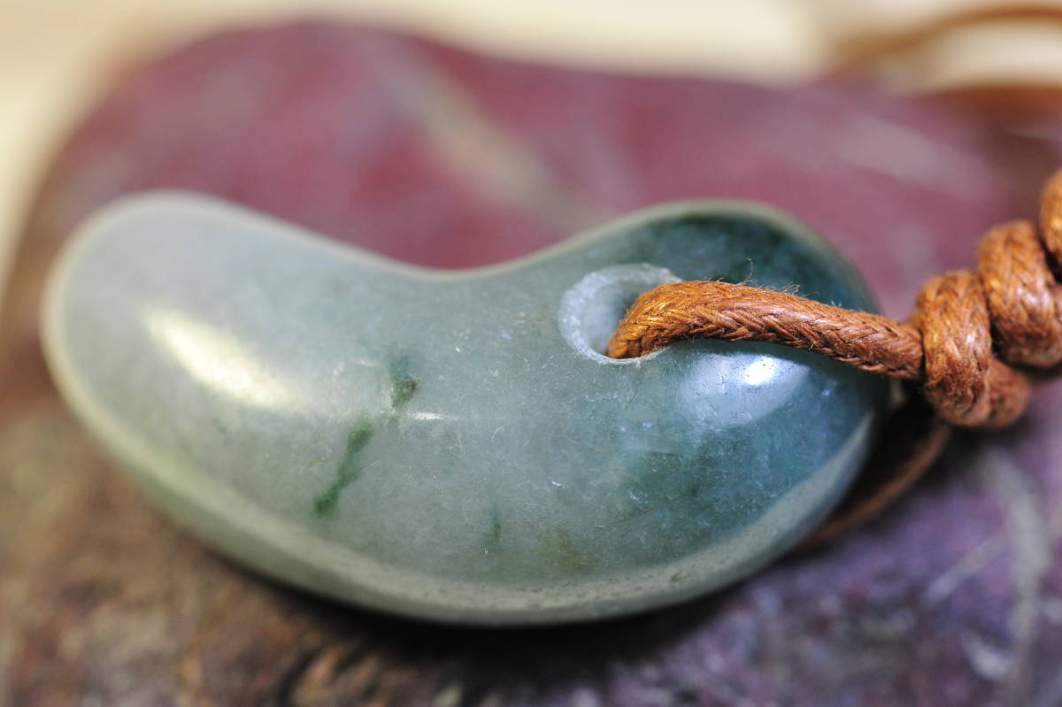 ミャンマー産翡翠を使って、日本国内で製作された翡翠の勾玉です。