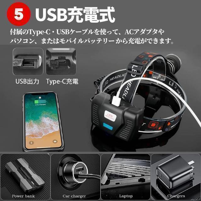 当LEDヘッドランプは電圧がより安定するType-C充電ポートを採用し、ACアダプタやパソコン、またはモバイルバッテリーから手軽に充電できます。 また、USB出力ポートを搭載し、いざという時モバイルバッテリーとしてスマホ、GPS等に出力できます。地震、停電など万が一の時に防災グッズとして十分にお使い頂けます。