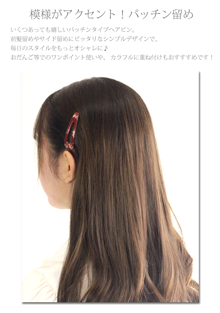 商品説明いくつあっても嬉しいパッチンタイプヘアピン。