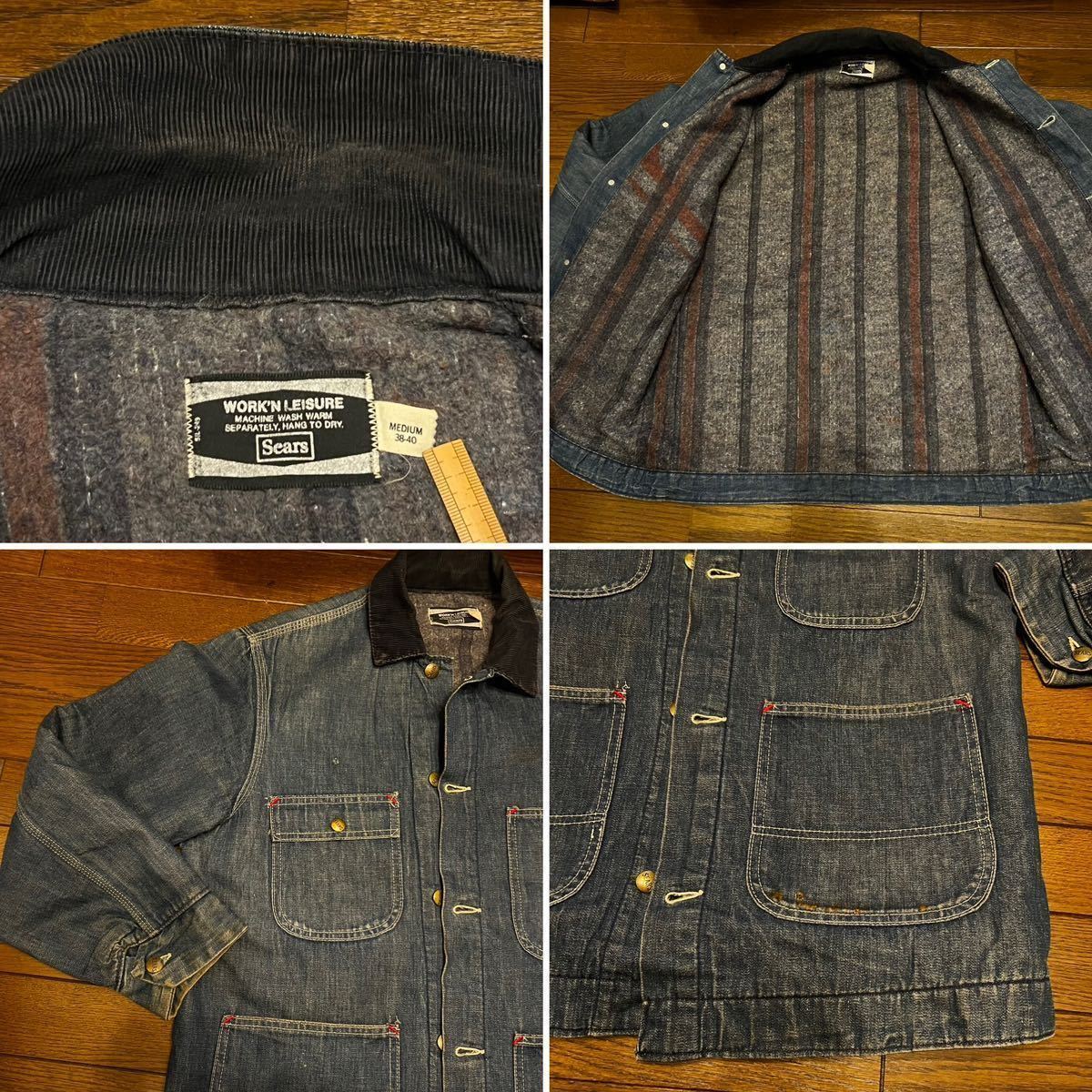 USA製 70's Sears シアーズ ヴィンテージ デニム カバーオール ジャケット ブランケットライナー Lサイズ 濃い インディゴ ヘラクレス