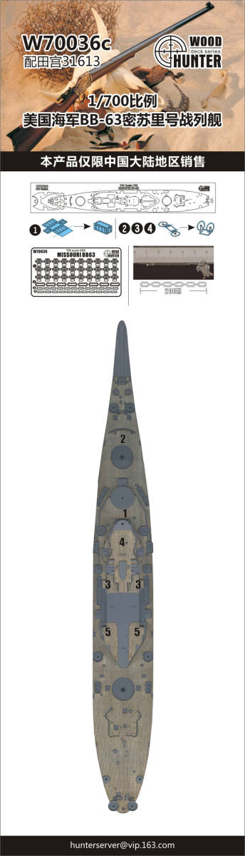 1/700 WWII アメリカ海軍 BB-63 ミズーリ型戦艦 用木甲板シール |