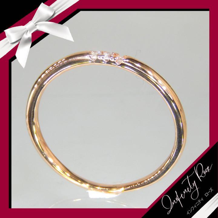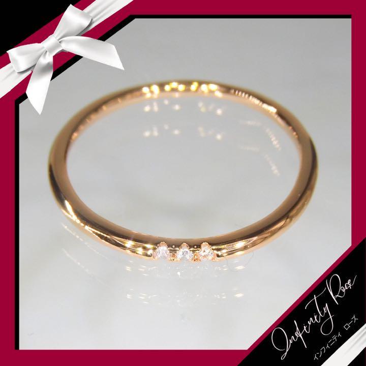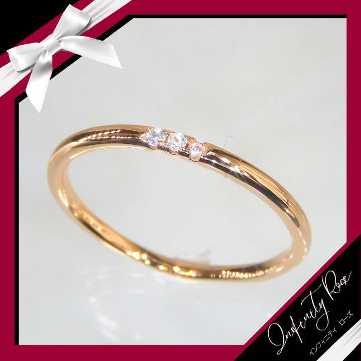 (R010P)14号 18KGPピンクゴールドのシンプル3粒細大人の指輪 リング
