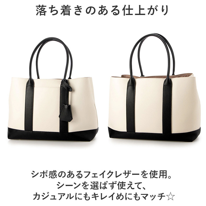・マットな質感に仕上げたトートバッグ。単色カラーやミックスカラーからお好みで選んで、お出かけのお供に♪取り外し可能なチャーム付き。