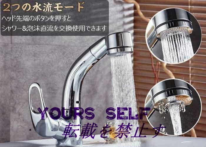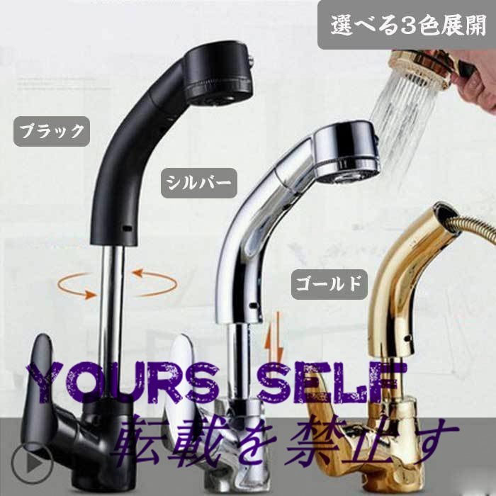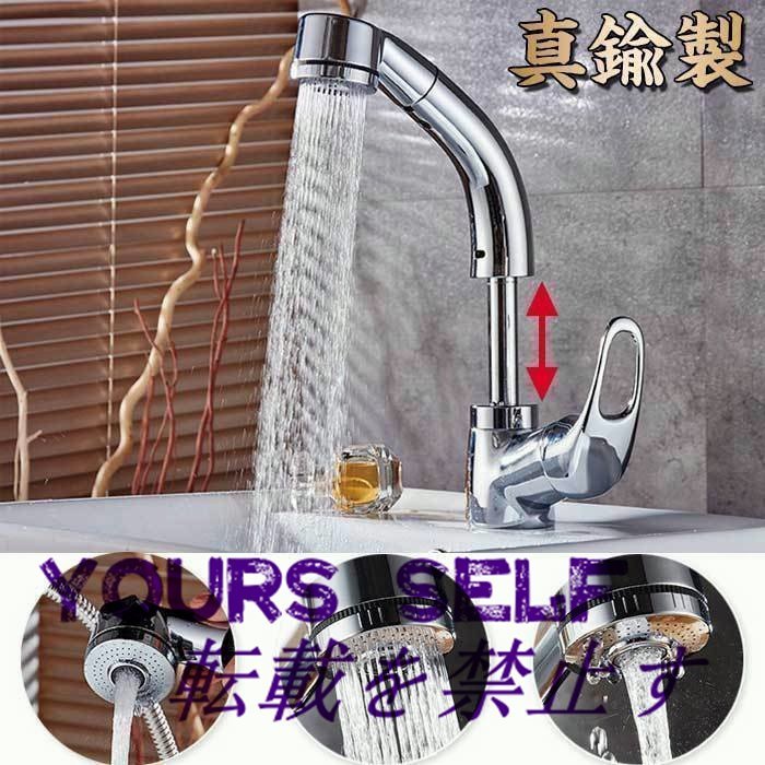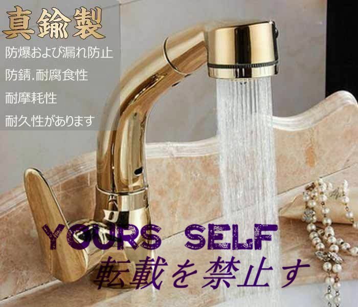 浴室洗面台蛇口 2方に吐水式 キッチン蛇口 浴室用水栓 洗面 洗髪用 蛇口 上下に動き引き出せる 真鍮製 伸縮 360度回転 ☆3色選択/1点