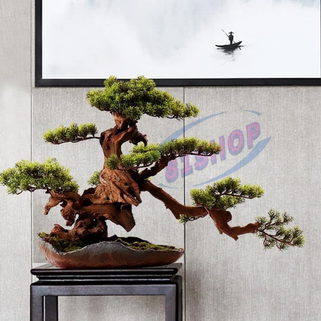 「81SHOP」芸術 .高級模造迎客松盆栽 置物 禅意迎客松盆栽装飾品 大型 人工盆栽 松の木 .天然の太幹